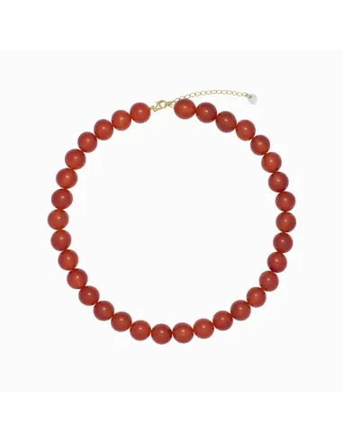 Den intense røde jade symboliserer styrke og vitalitet. Håndlavet med omhu og præcision er halskæden mere end blot et smykke; den er et udtryk for naturlig skønhed og positiv kraft.