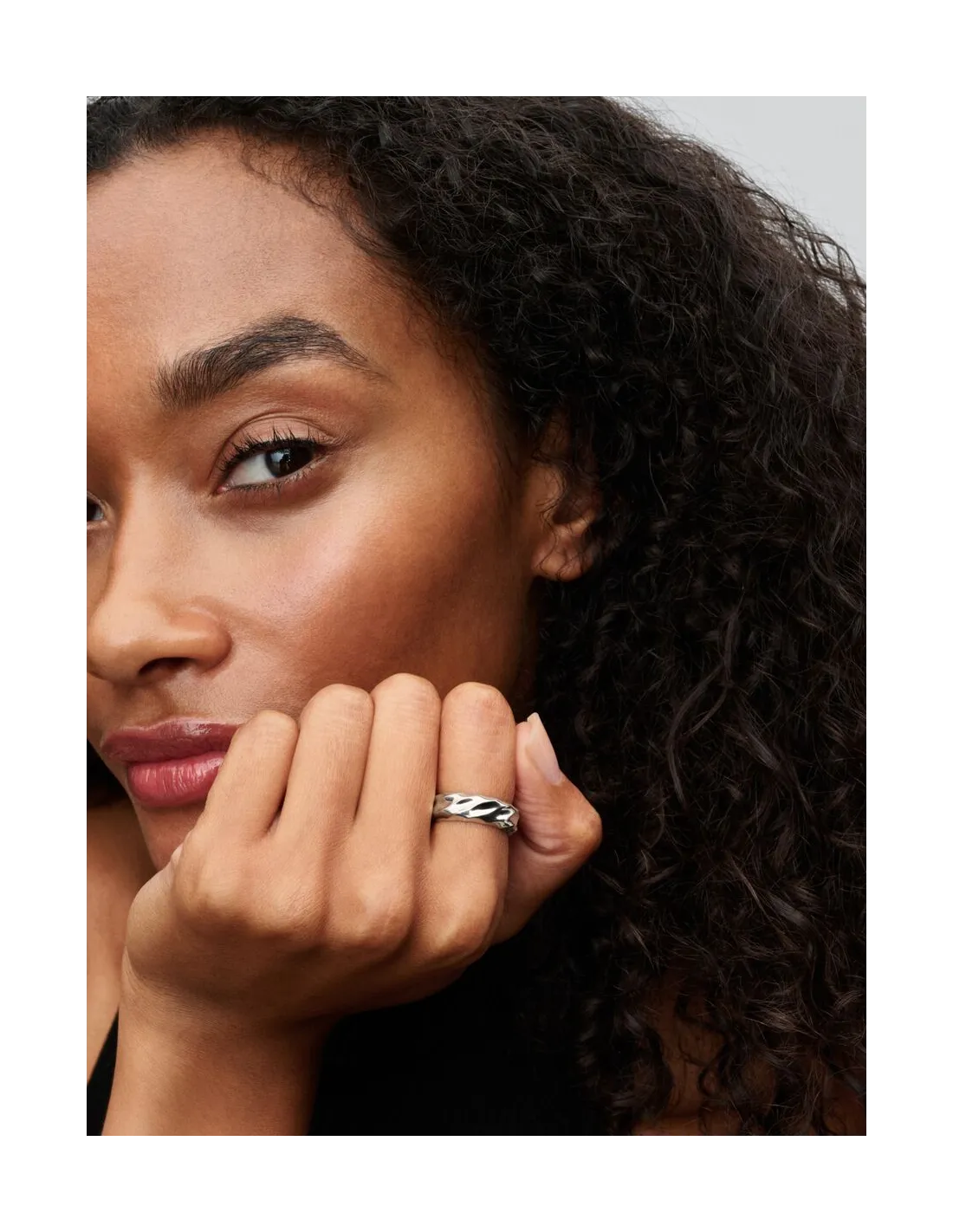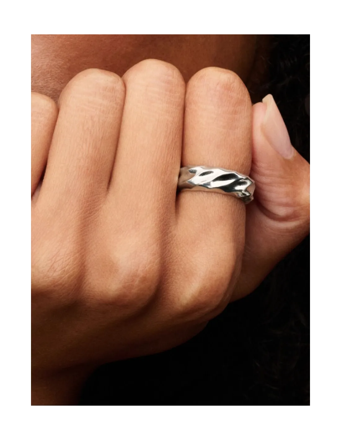 Ringens riflede, brede designmønster er inspireret af skønheden ved uperfekthed. Det er et symbol på individualitet og en hyldest til det, der gør dig unik.