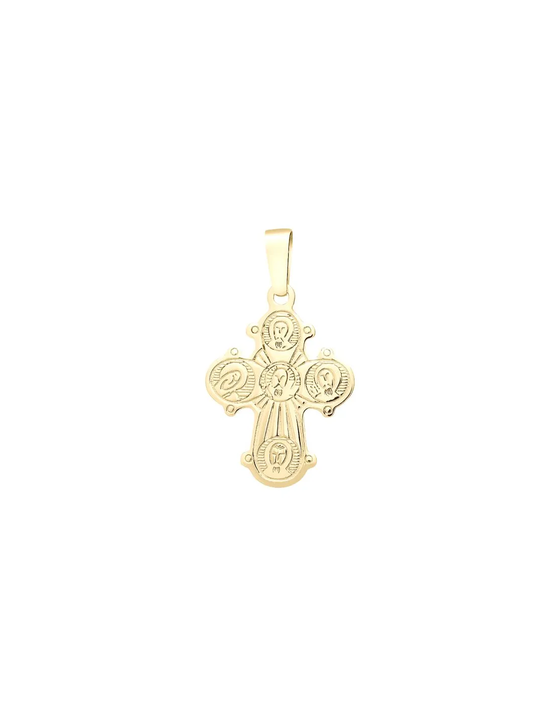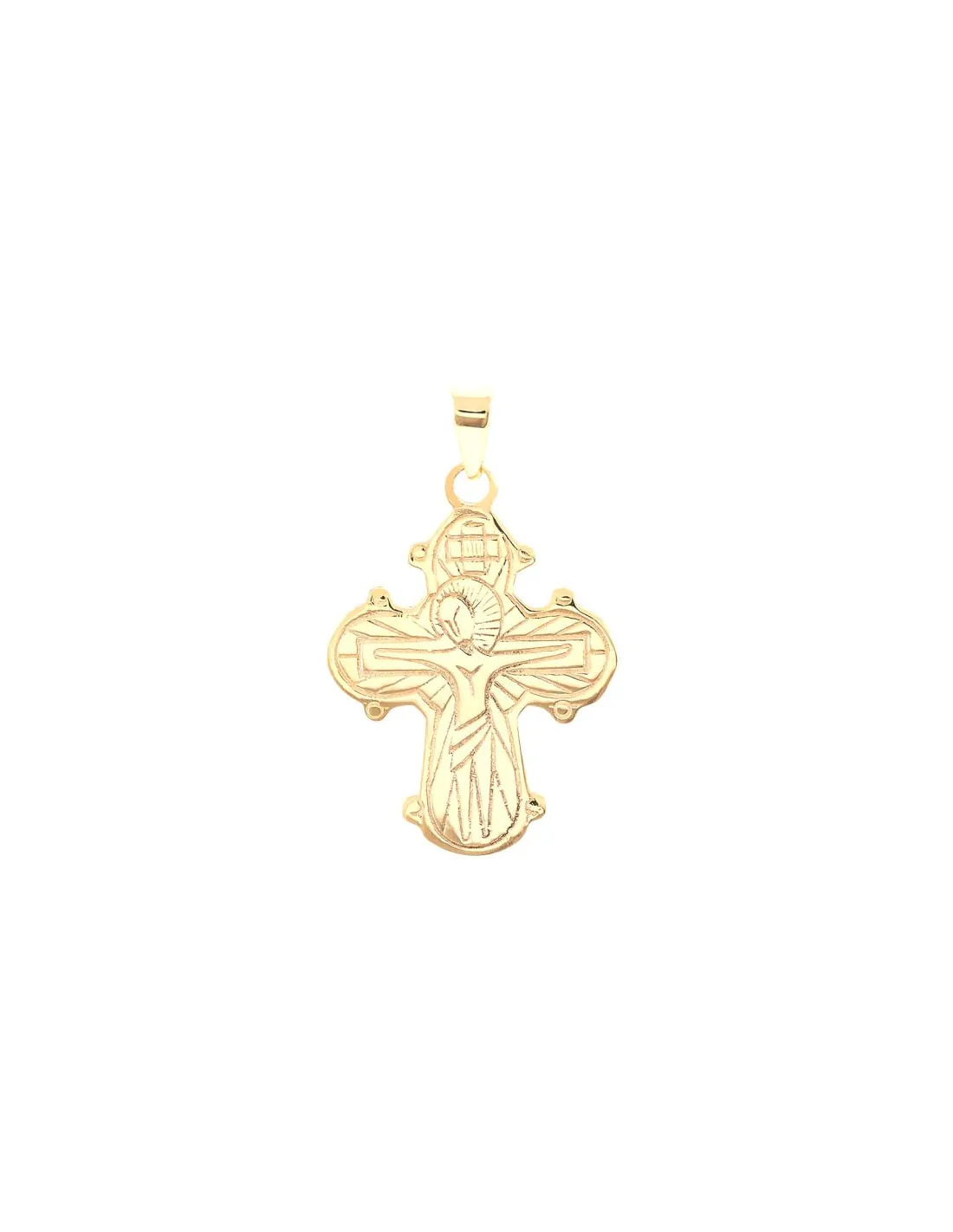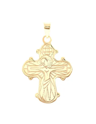 Stilistisk Dagmarkors i 8 kt. guld. På forsiden ses den korsfæstede Jesus. På bagsiden ses Jesus afbilledet i midten med Jomfru Maria til højre og Johannes Døberen til venstre. Øverst og nederst ses to Byzantinske helgener Basilios og Johannes Gyldenmund.
