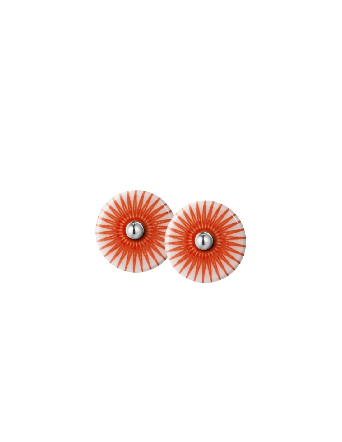 Ørestikkere i hvid porcelæn, med SCHERNING's ikoniske SPLASH dekoration i en smuk coral rød.