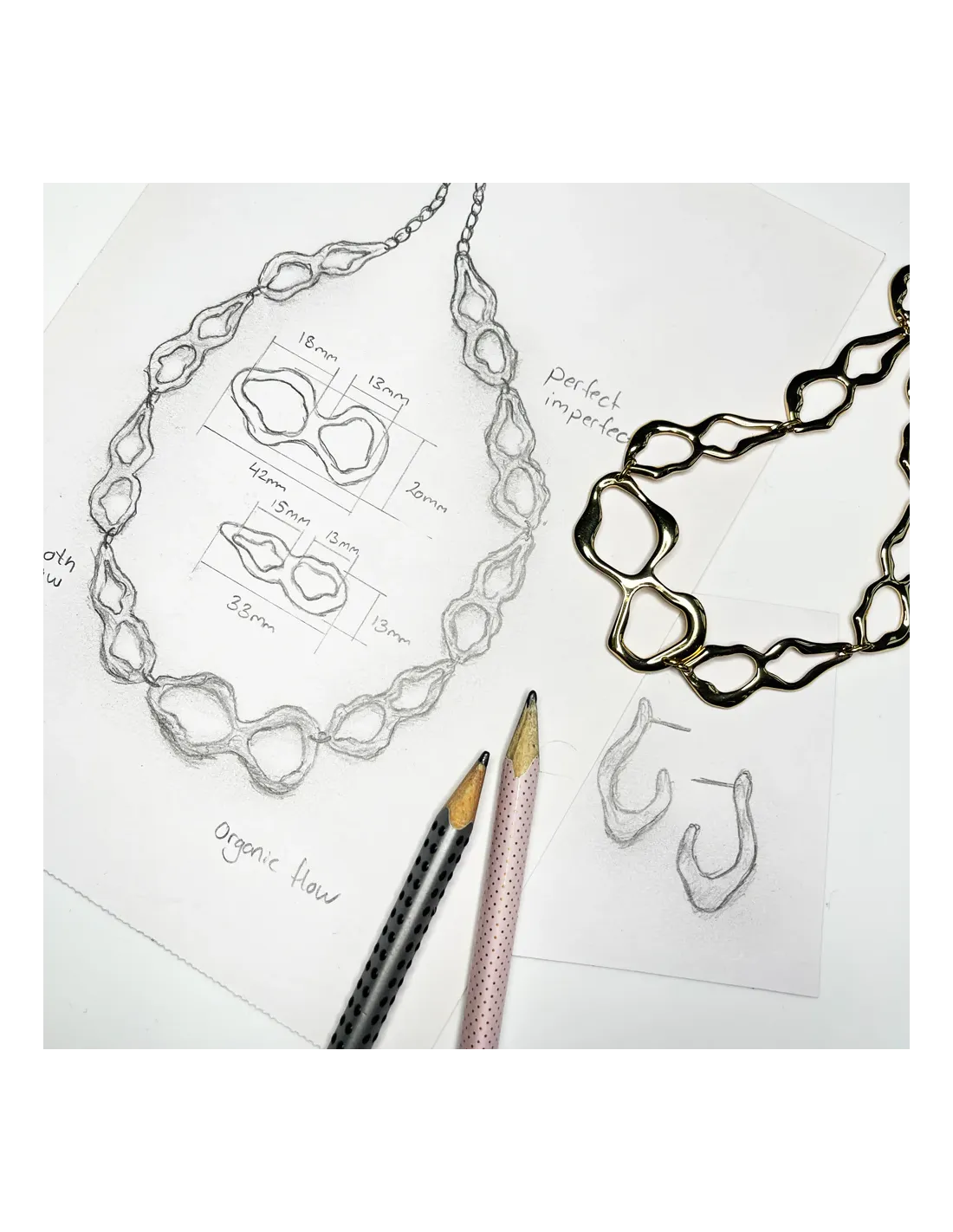Disse creoler har et råt og skævt udtryk, der bryder med det klassiske look. Formen er organisk og uperfekt – præcis som smykkerne i resten af Signes kollektion, hvor det personlige og ægte får plads. Creolerne fås også i en større udgave, hvilket gør det nemt at tilpasse looket efter din stil. Brug dem alene eller kombiner størrelserne for et mere markant udtryk – perfekt til dig med flere huller i ørerne eller lyst til at mixe.