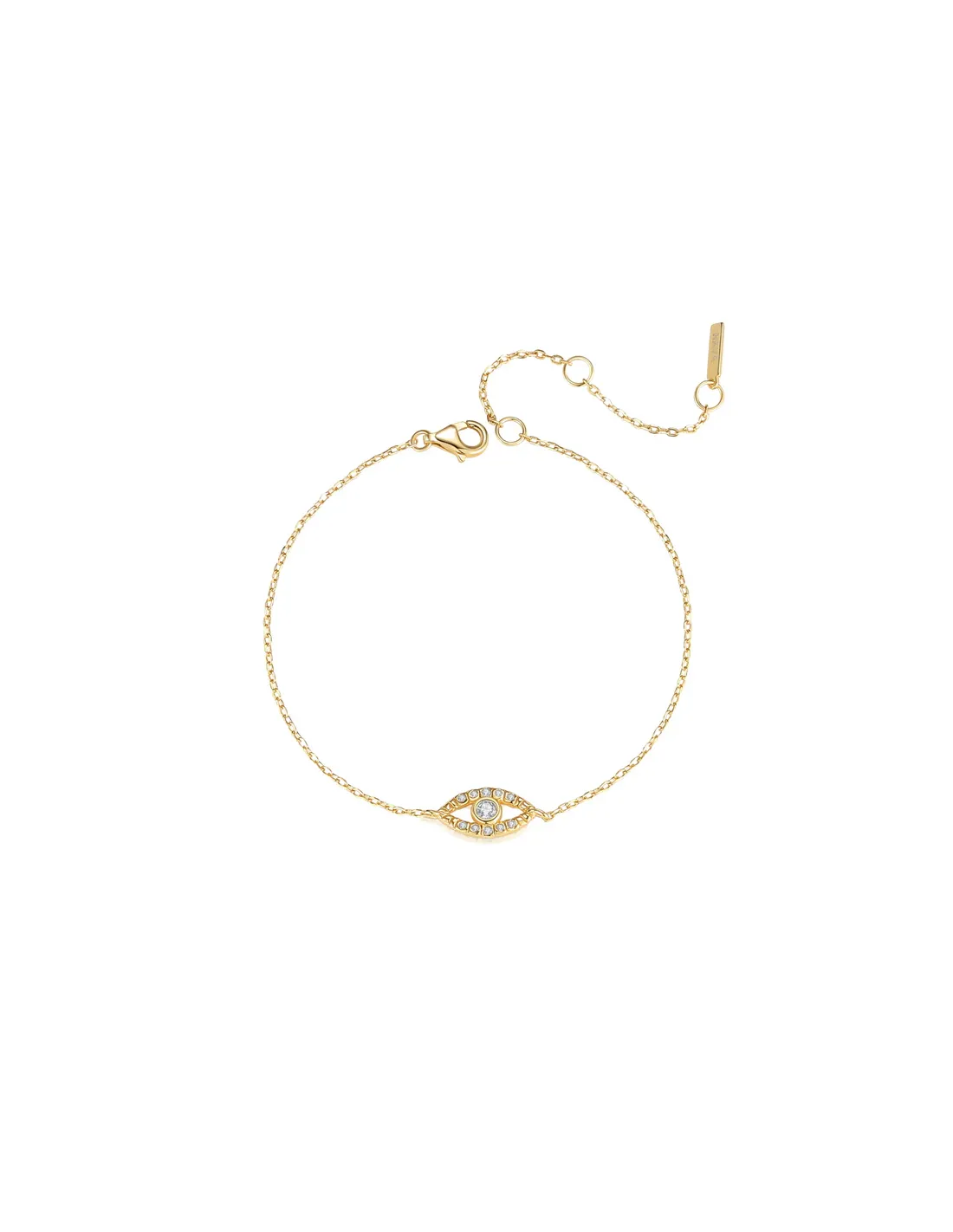 Tiye Bracelet er et delikat armbånd med et elegant Evil Eye-vedhæng, prydet med funklende zirkoner. Symbolet repræsenterer beskyttelse og styrke, hvilket gør det til både et meningsfuldt og smukt smykke.