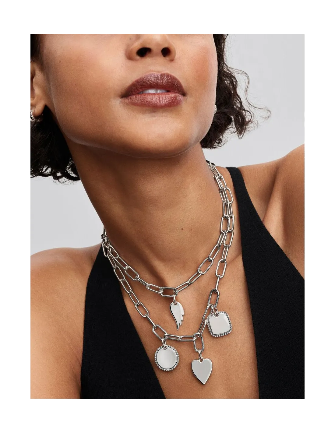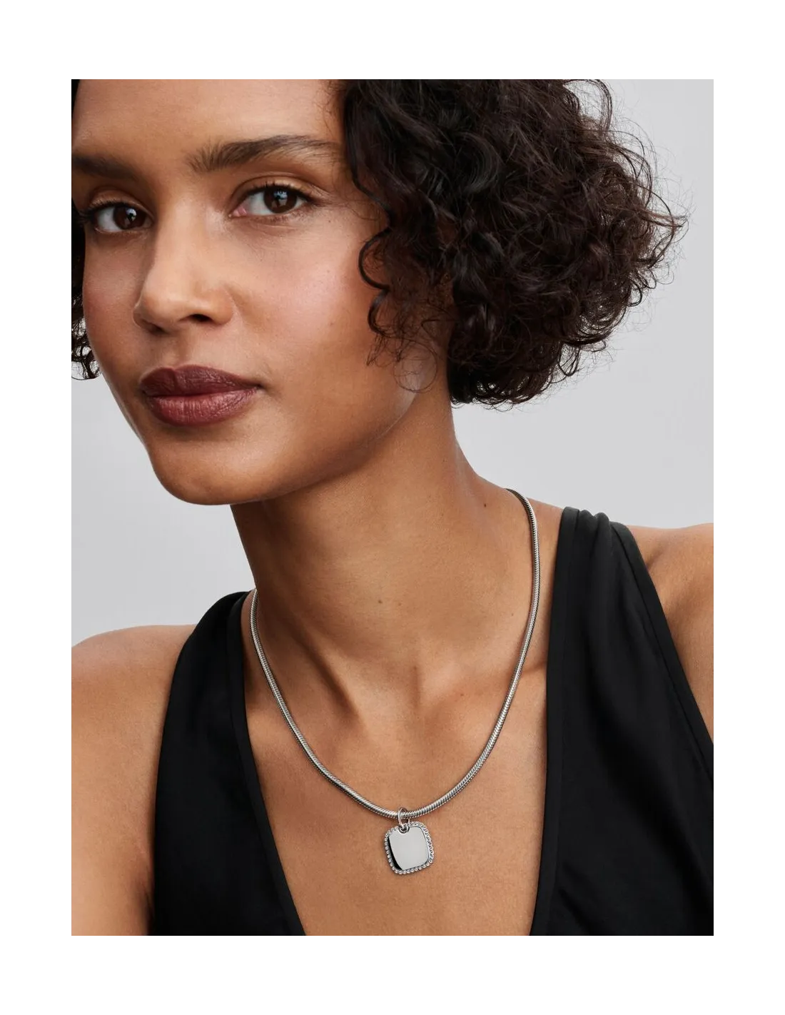 Minimalistisk stil, der viser et statement. Føj vores indgraverbare firkantede skivevedhæng i sterlingsølv, omkranset af funklende sten, til din kollektion.
