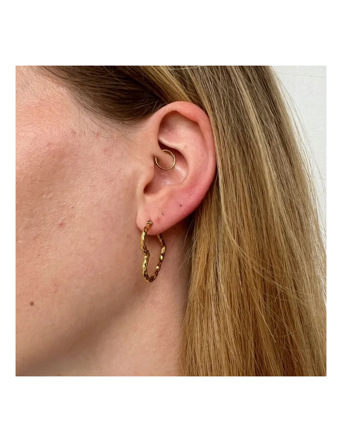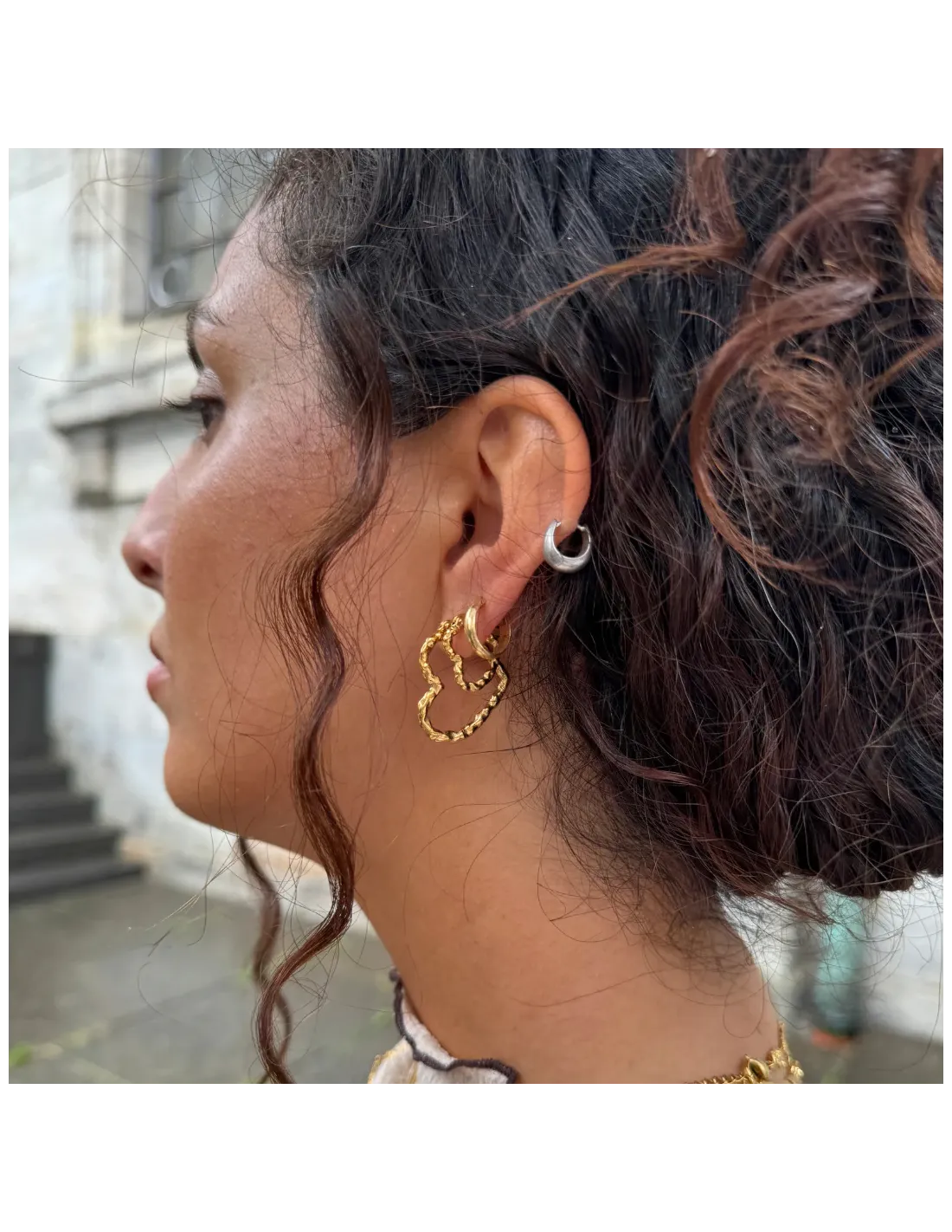 Statement alert! Hjerteformede øreringe med tekstur, der fanger lyset og giver dit look kant. Brug dem til hverdag med jeans og tee – eller til festen med sleek opsat hår.