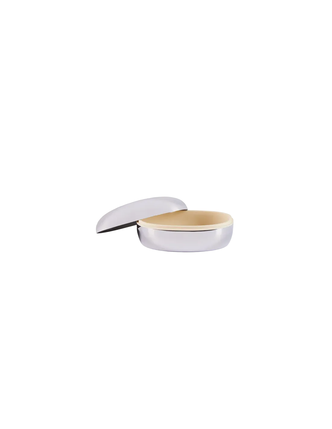 Piet Heins smykkeskrin i rustfrit stål er formet som en elegant superellipse, der forener tidløst design og funktionalitet. Smykkeskrinnets ydre af stål skaber et sofistikeret udtryk, mens det rummelige indre og det bløde indlæg gør det ideelt til opbevaring af smykker. Smykkeskrinet fås i to størrelser og med blank eller børstet overflade. Ideel som gave til særlige lejligheder, med mulighed for gravering af navn og dato.