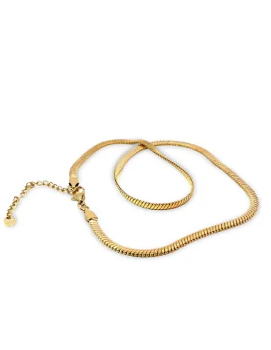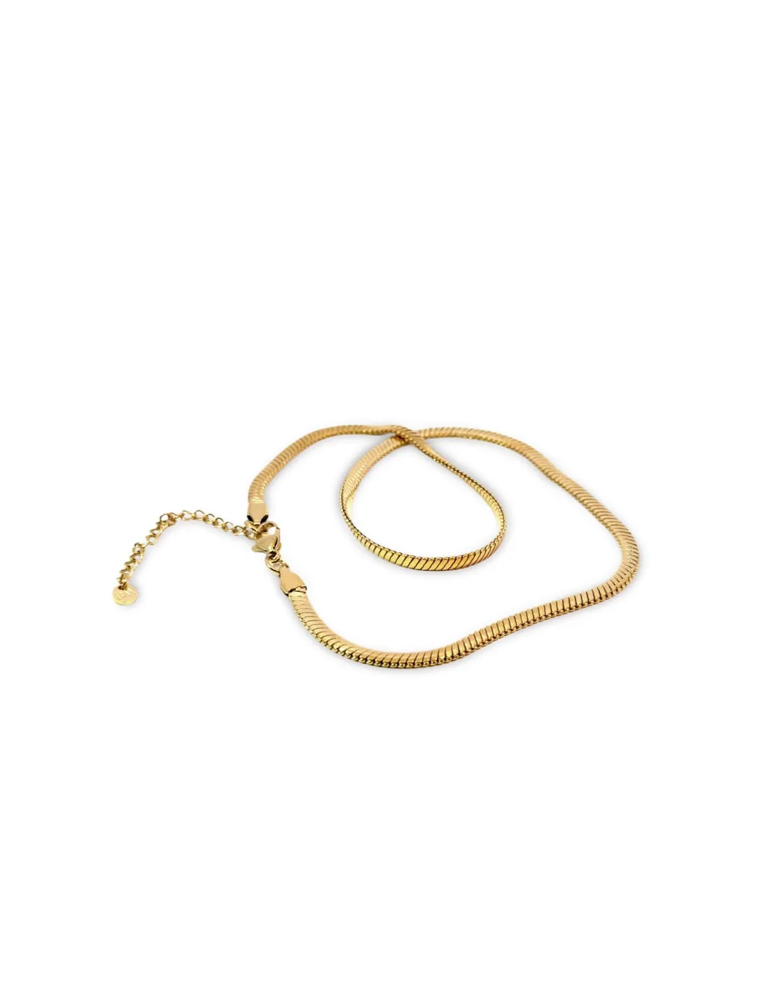 Shine Necklace fra BAY by Aqua Dulce er en moderne og iøjnefaldende halskæde fremstillet i 18 kt PVD-belagt rustfrit stål. Med en justerbar længde og en blank, glansfuld overflade er den designet som et statement-piece, der tilføjer kant og shine til dit look—perfekt til både hverdag og fest.