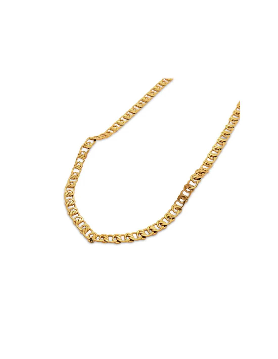 Granny Necklace fra BAY by Aqua Dulce er en statement-halskæde i holdbar rustfri stål med skinnende 18 kt PVD-belægning. Med en fleksibel længde (40 +5 cm) og karakterfuldt design udstråler den moderne kant og selvsikkerhed. Perfekt som solo-stykke eller kombineret med andre smykker for et personligt touch.