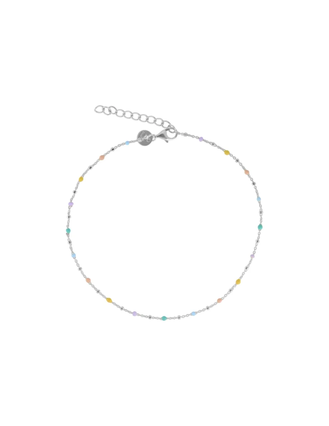 AQUA DULCE | Ankelkæde i sølv med farvede perler