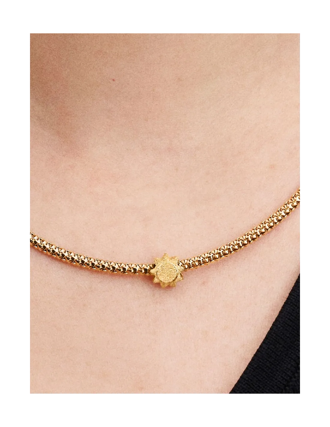 Bring varme og positiv energi ind i dit smykkeskrin med denne Pandora charm formet som en sol. Charmet er fremstillet i 925 sterlingsølv belagt med guld og har en smuk, struktureret overflade, der giver designet et organisk og levende udtryk.