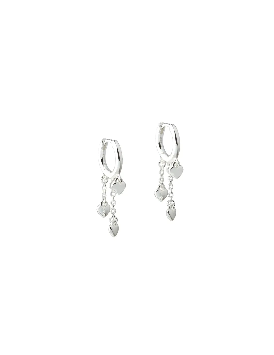 Disse Aqua Dulce sølvøreringe er designet med små hjertevedhæng, der hænger fra fine kæder. Øreringene er fremstillet i 925 sterling sølv, hvilket giver dem en holdbar og skinnende finish. De små hjerter tilfører et feminint udtryk, mens kæderne giver bevægelse og et let look, der passer perfekt til både hverdag og fest.