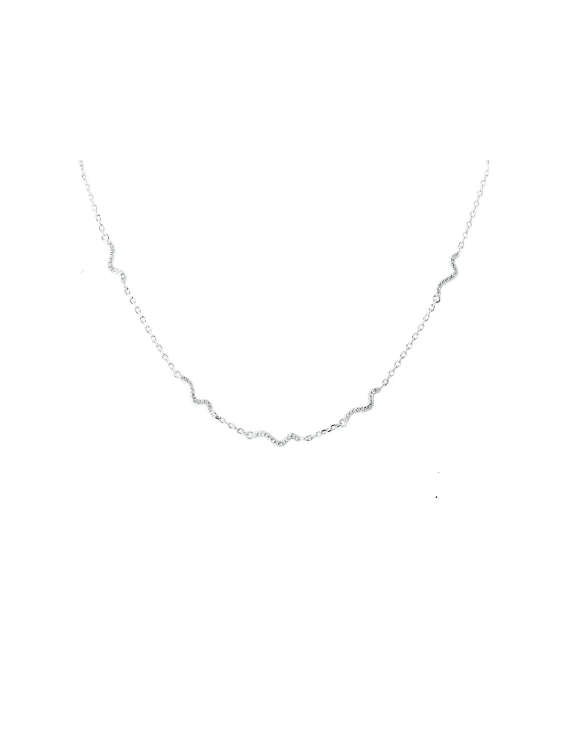 Denne Aqua Dulce halskæde er fremstillet i 925 sterling sølv og designet med små bølgede led, der er prydet med klare zirkoner. Kombinationen af skinnende sølv og funklende sten giver et let og feminint udtryk, som passer til både hverdag og fest.