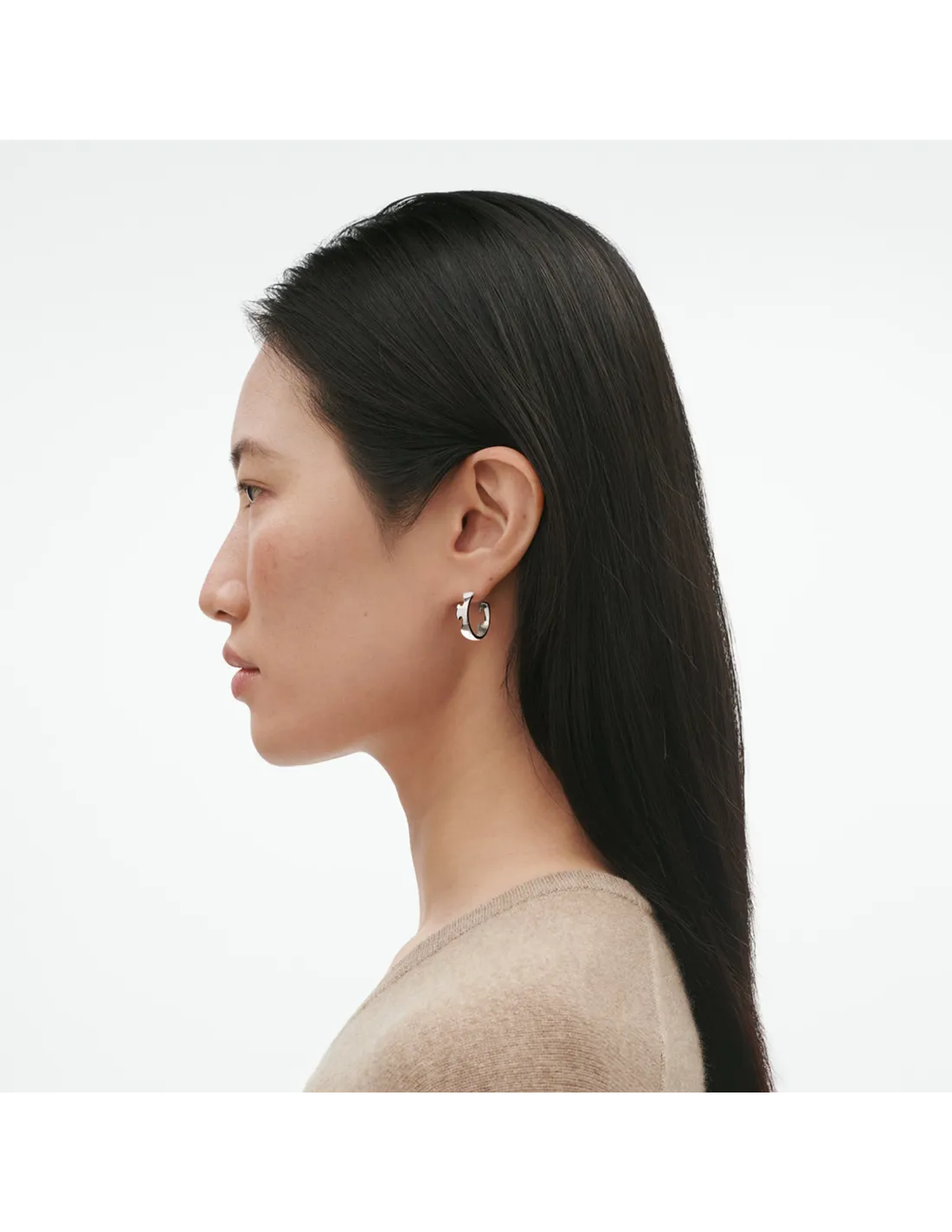 FUSION Store øreringe fra Georg Jensen er udført i 18 kt. hvidguld og formet med kollektionens karakteristiske, bølgende konturer. Øreringenes åbne hoop-silhuet lægger sig flot om øret og giver et markant udtryk, der er let at style til både hverdag og fest. Designet bygger på Nina Koppels idé om at kombinere former på tværs af Fusion-serien, så smykkerne kan bæres enkeltvis eller sammensættes for et personligt look. Fremstillet i certificeret genanvendt 18 karat guld.