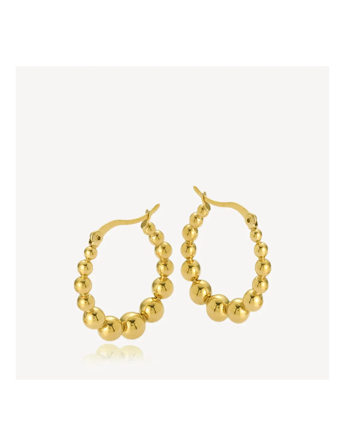 Disse Bubble creoler fra Sistie er fremstillet i rustfrit stål og forgyldt med 18 kt. guld, hvilket giver et varmt og eksklusivt udtryk. Designet består af blankpolerede kugler i forskellige størrelser, der skaber et legende og moderne look.