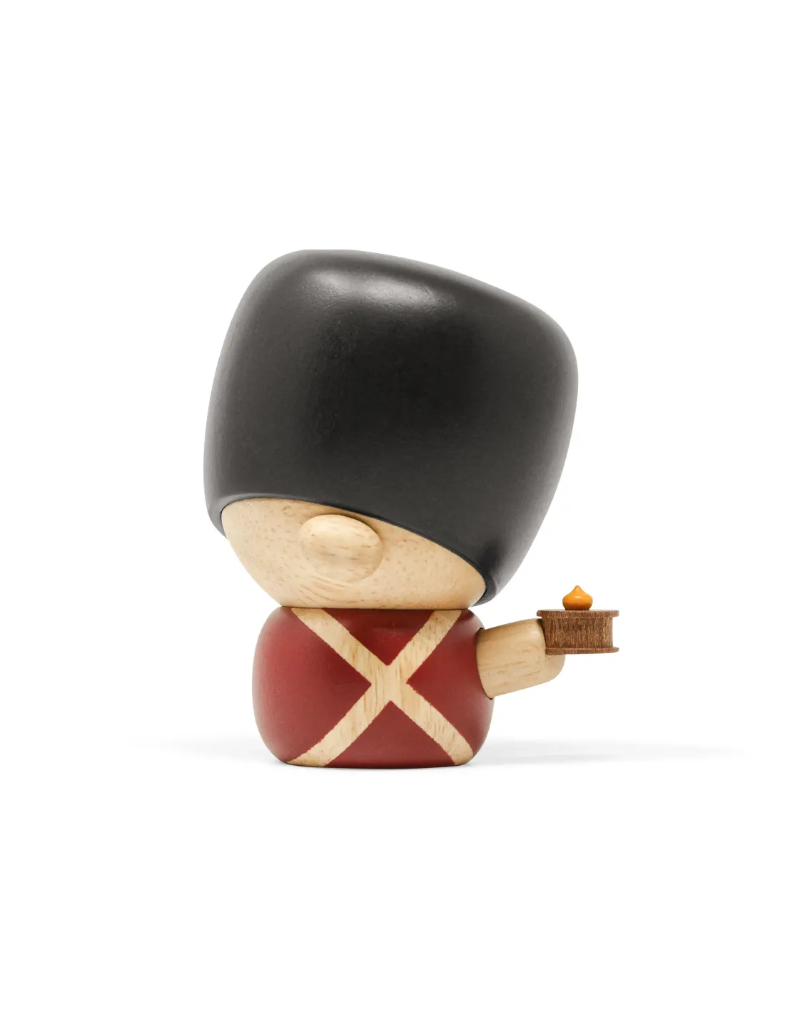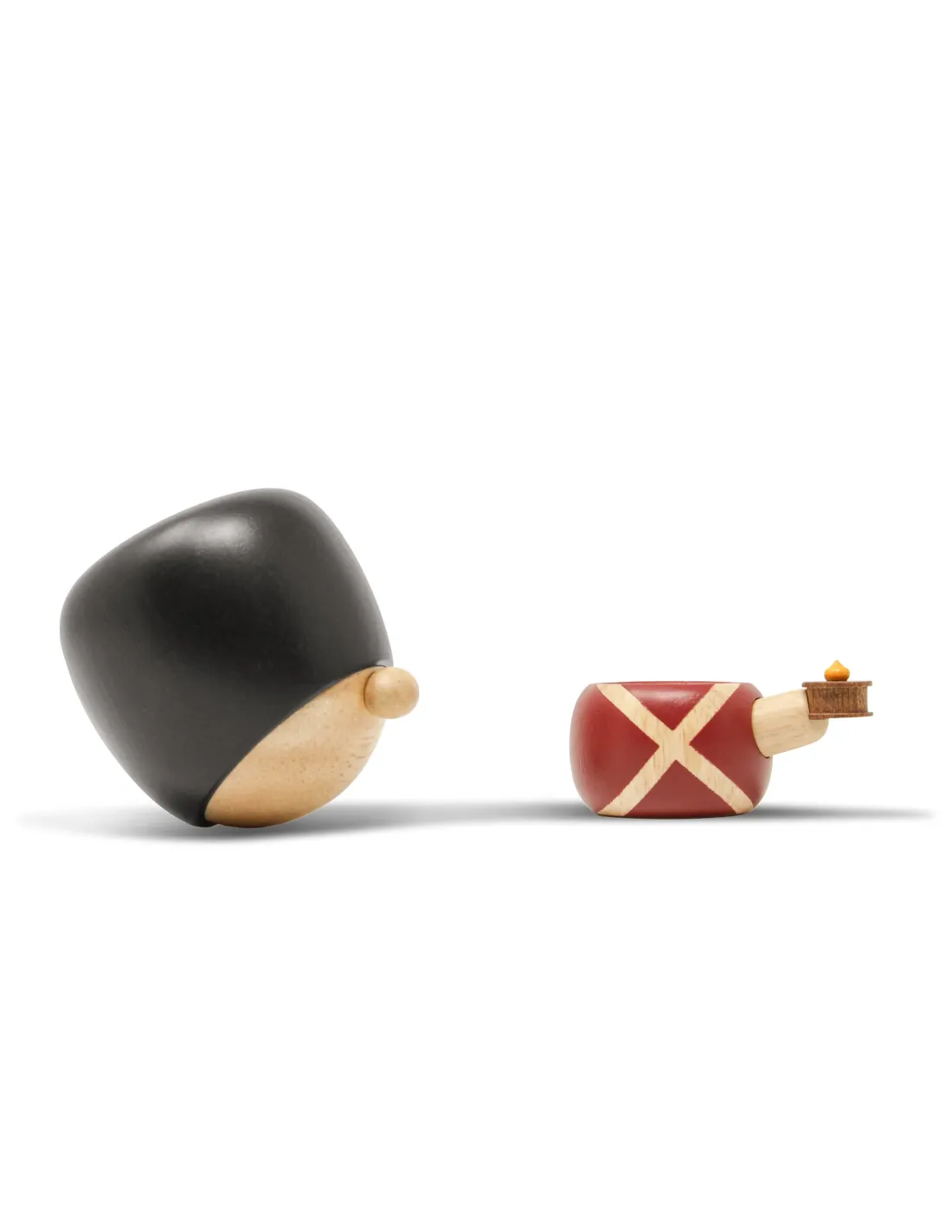 Denne træfigur er inspireret af H.C. Andersens eventyr Fyrtøjet. Figuren forestiller den tapre soldat med sit fyrtøj i hånden og tornystret på ryggen, klar til at fremmane hunden med øjne så store som Rundetårn.