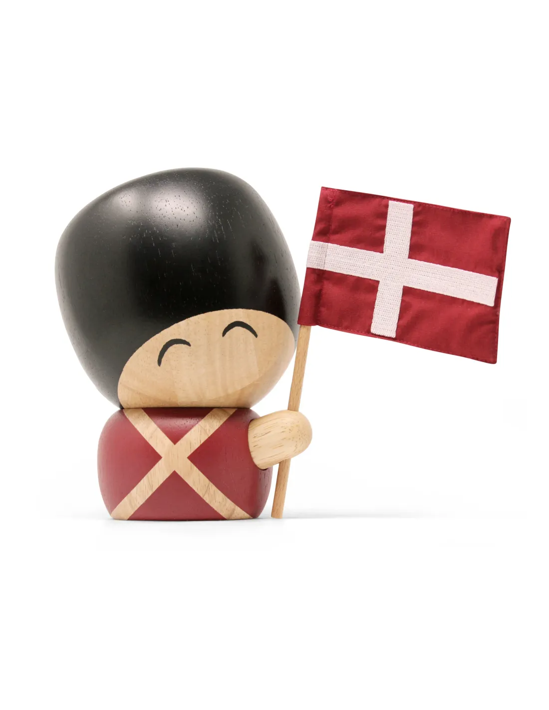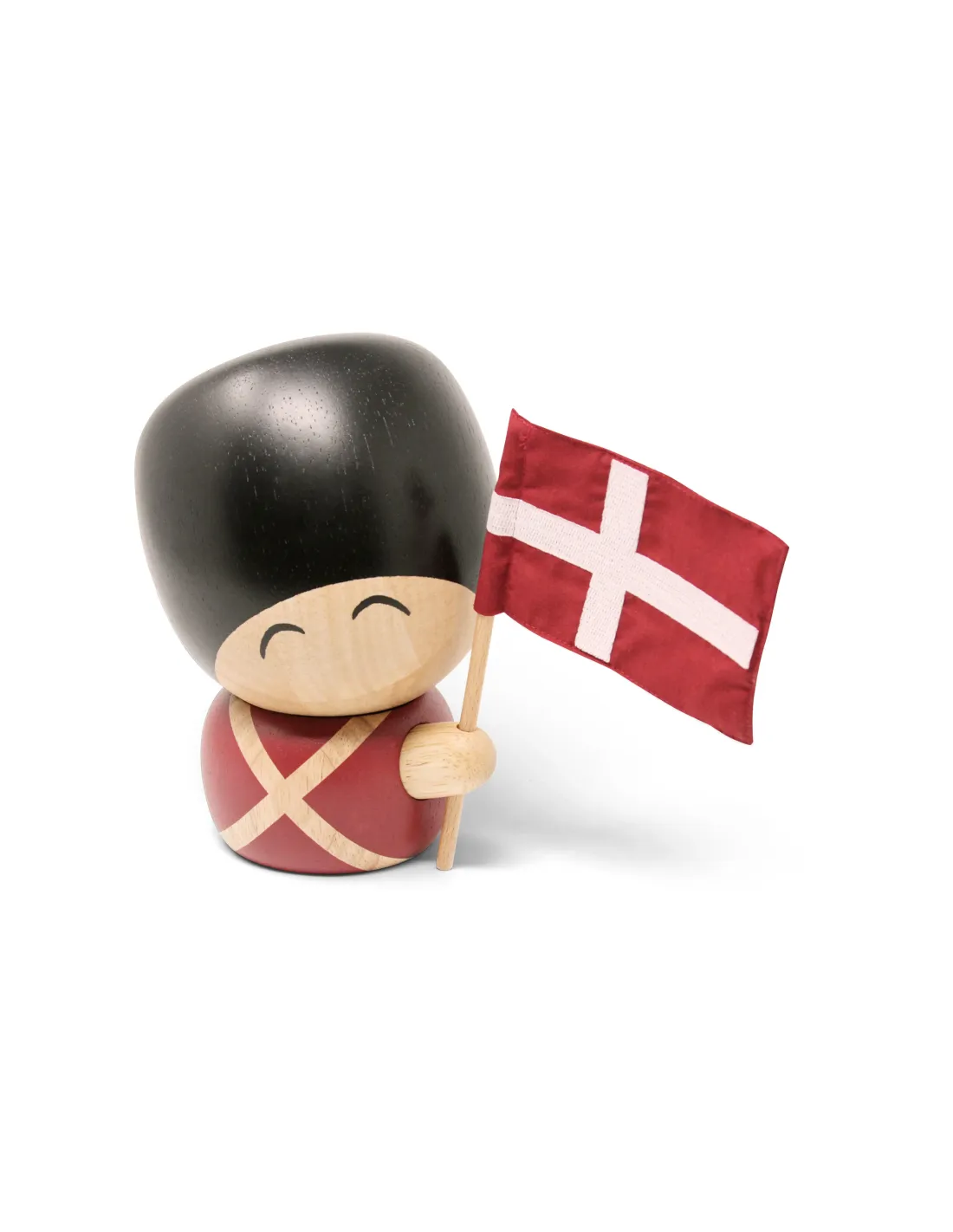 Denne håndlavede figur er fremstillet af FSC®-certificeret gummitræ fra bæredygtige plantager. Flaget er lavet i bomuld med broderet kors, hvilket giver et klassisk og autentisk udtryk. Med en højde på 17 cm og vægt på 650 g er Valdemar en markant figur, der skaber stemning i hjemmet.