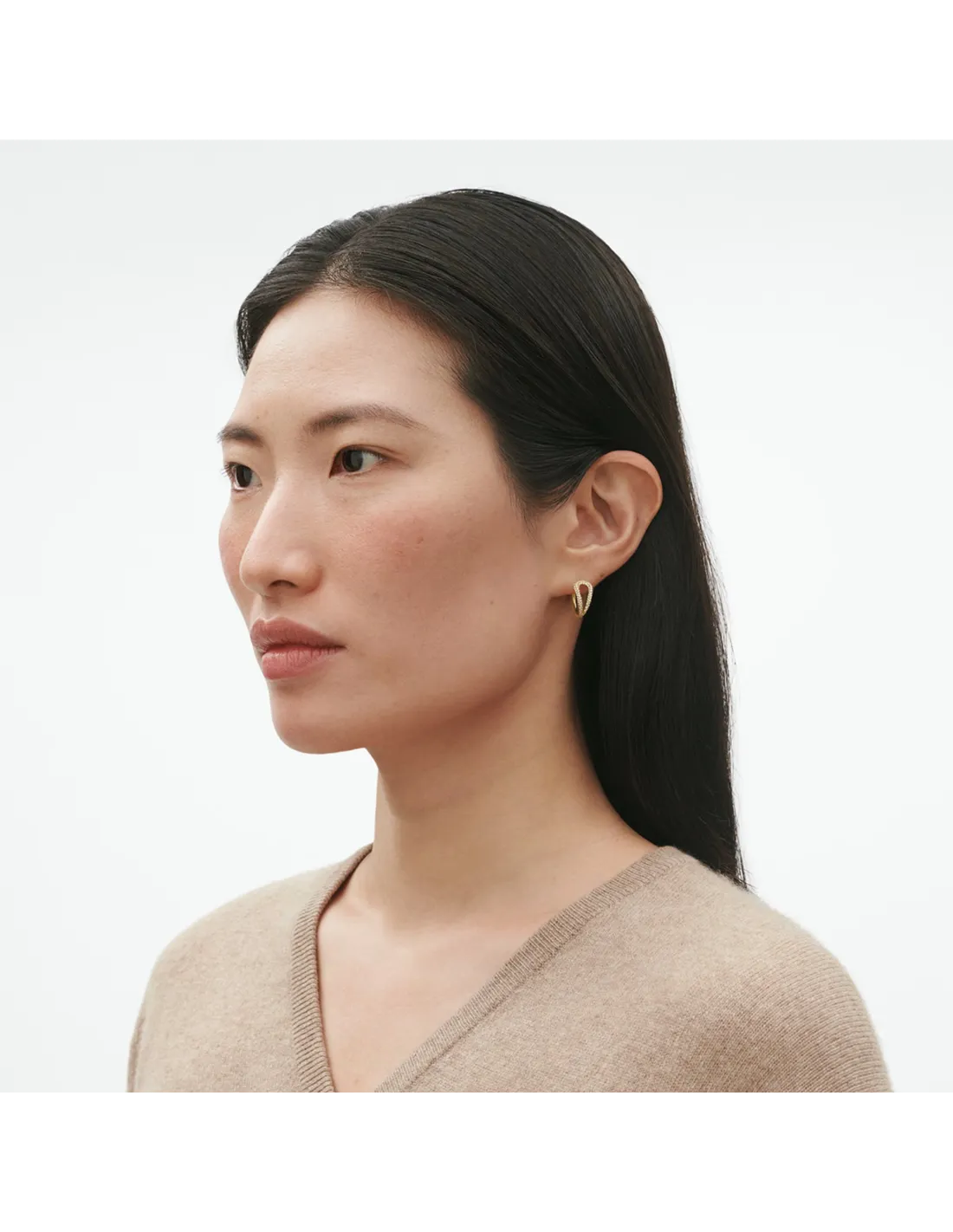 Øreringene er fremstillet i massivt 18 karat guld og prydet med brillantslebne diamanter, der reflekterer lyset smukt ved hver bevægelse. Designet er både moderne og tidløst, hvilket gør dem ideelle til særlige anledninger såvel som til at løfte et hverdagslook.