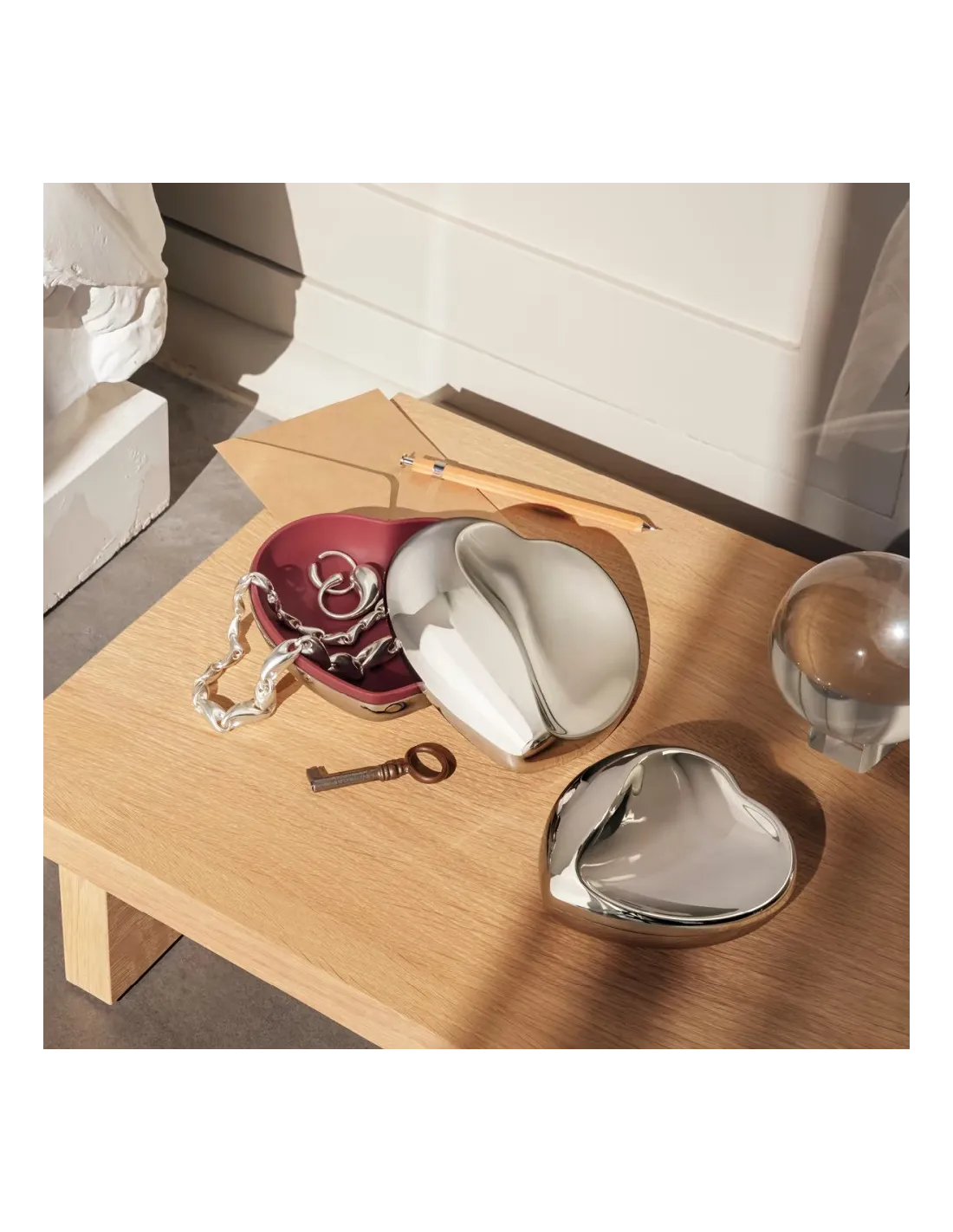 Den lille Heart Box er ideel til opbevaring af smykker, små minder eller som en kærlig gaveæske til en særlig anledning. Med sit stilrene og moderne udtryk passer den ind i ethvert hjem og fungerer samtidig som en personlig og meningsfuld gave til fx Valentinsdag, bryllup eller jubilæum.