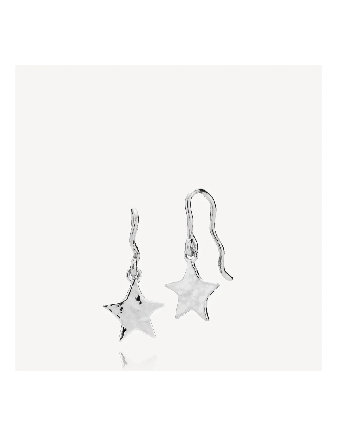Skyla Øreringe Sølv fra Sistie er et par hængeøreringe med krog og et stjerneformet vedhæng. Overfladen har en hamret struktur, der giver øreringene et råt men feminint udtryk. Et smykke, der er oplagt til at skabe et personligt look – både til hverdag og til fest.