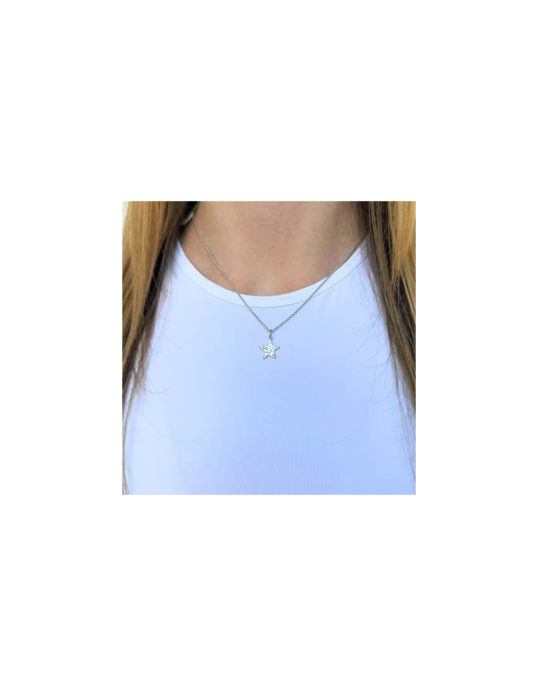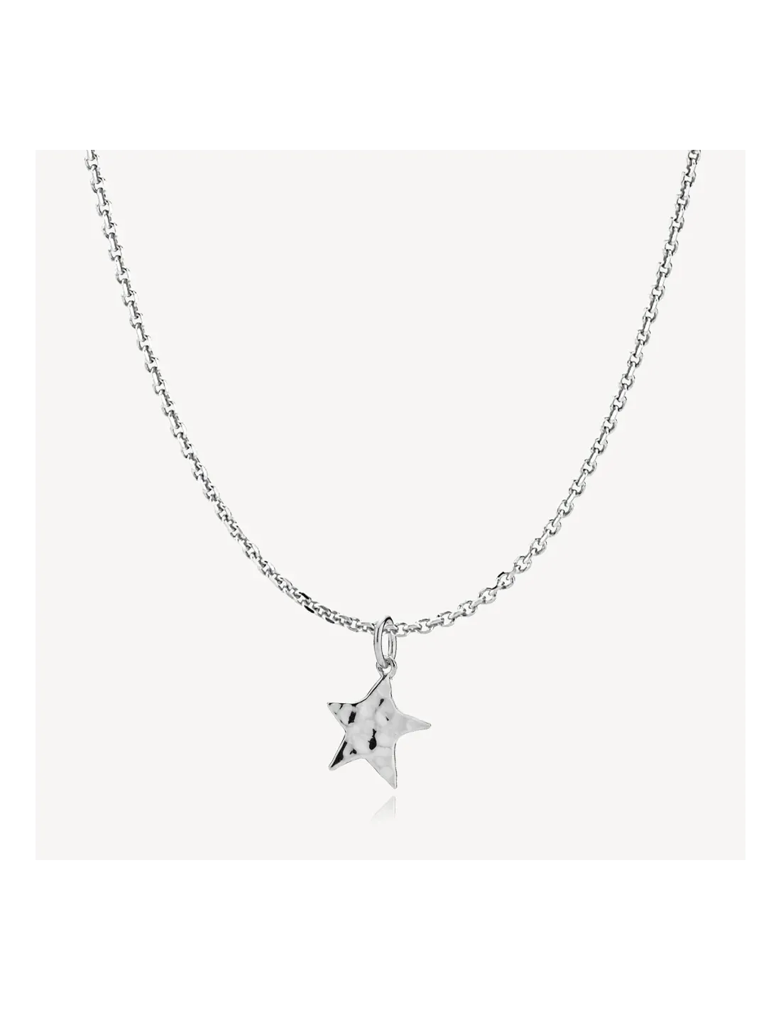 Skyla Halskæde Sølv fra Sistie er en stilfuld halskæde med et stjerneformet vedhæng. Vedhænget har en hamret overflade, som giver et råt og personligt look. Halskæden er ideel til både hverdag og fest og kan bæres alene eller sammen med andre kæder for et trendy lag-på-lag udtryk.