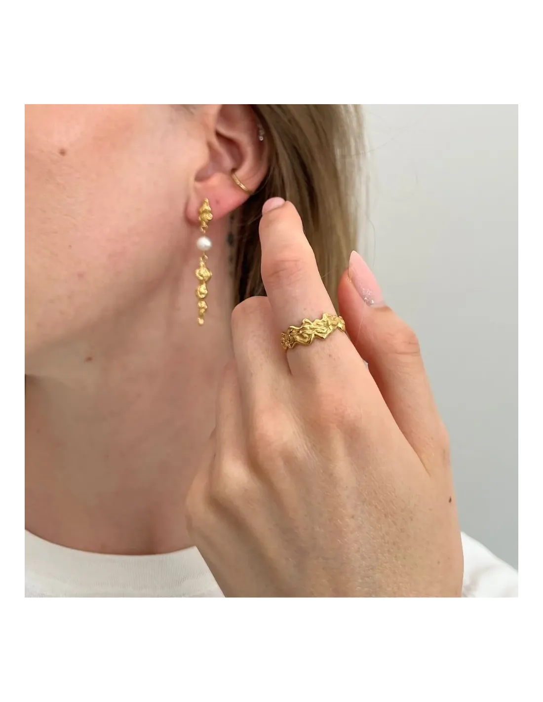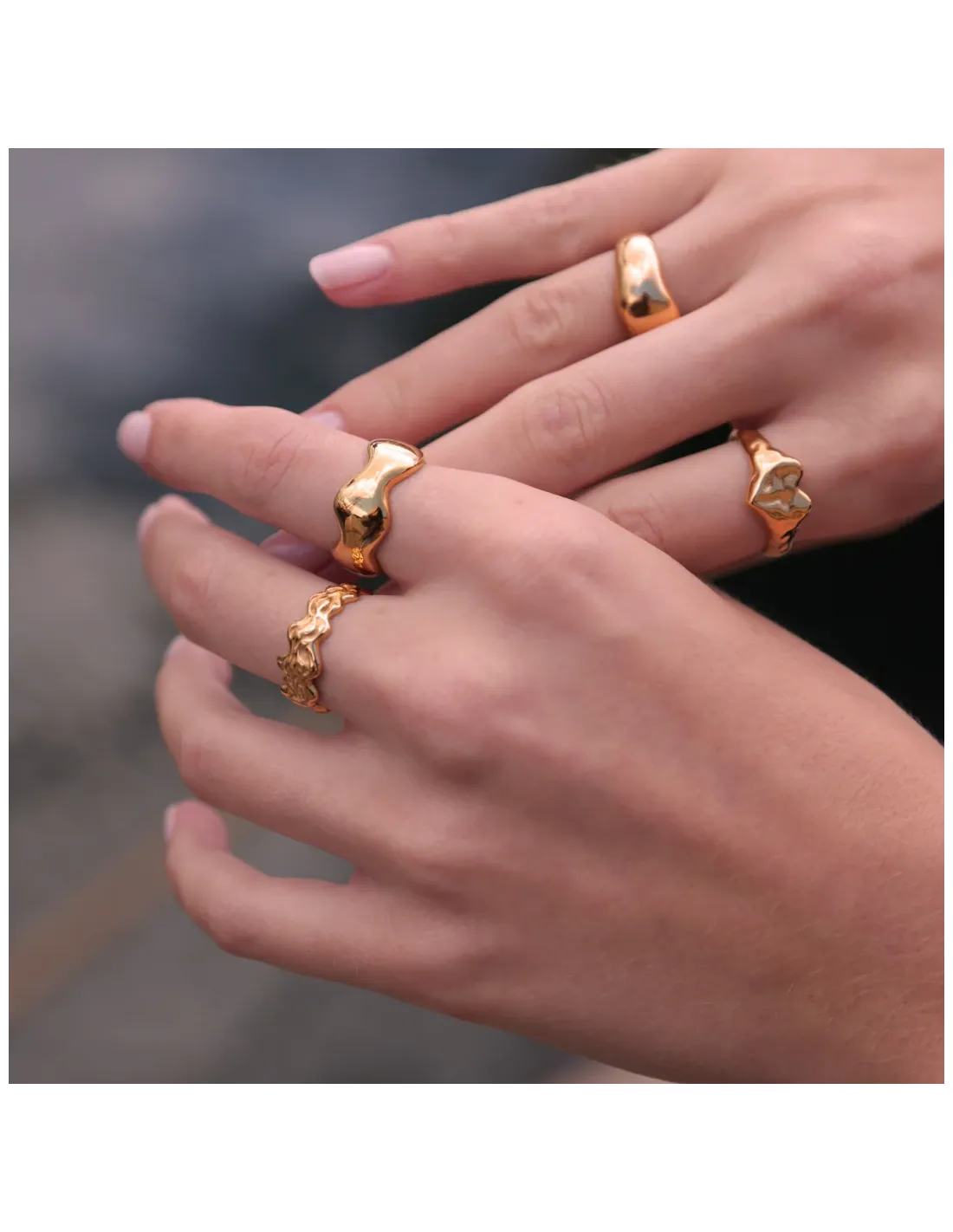 Alle smykker er lavet i genanvendt stainless steel og belagt med ekstra holdbar PVD-coating, som sikrer lang levetid – også i vand. De tåler både klor, saltvand og daglig brug uden at miste glans.