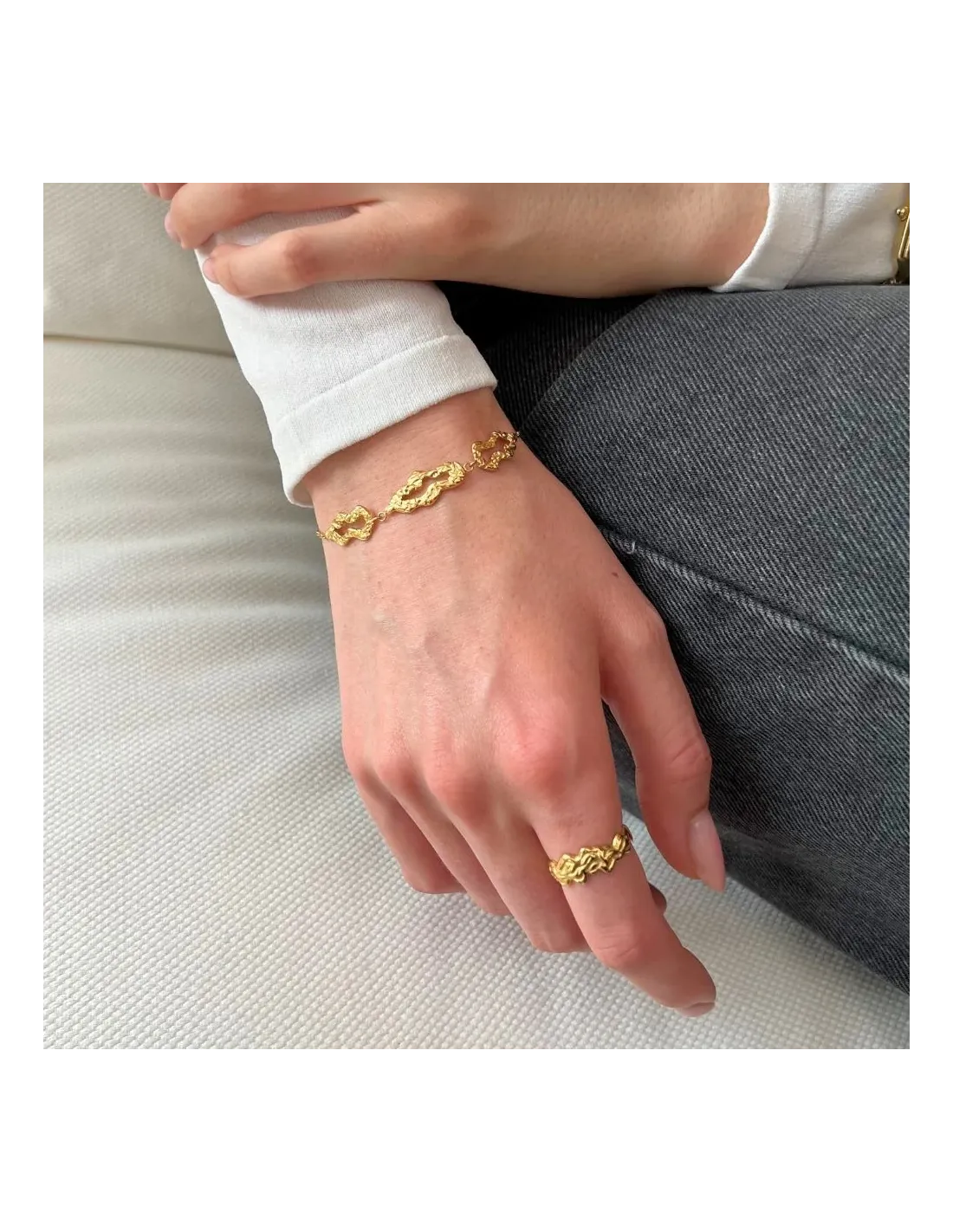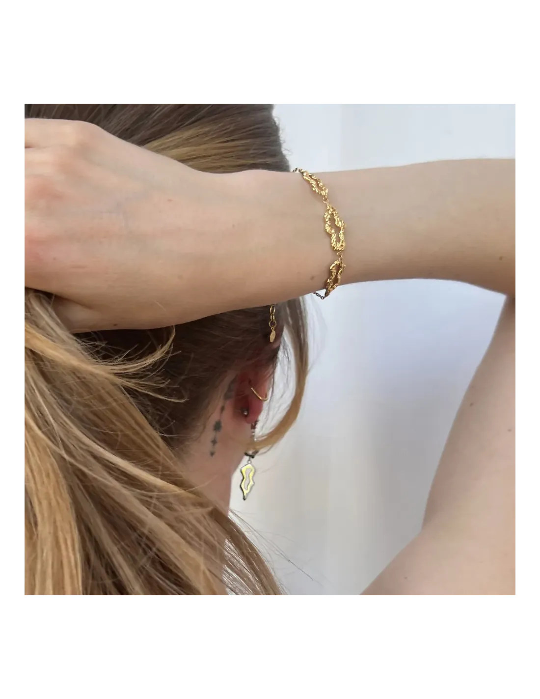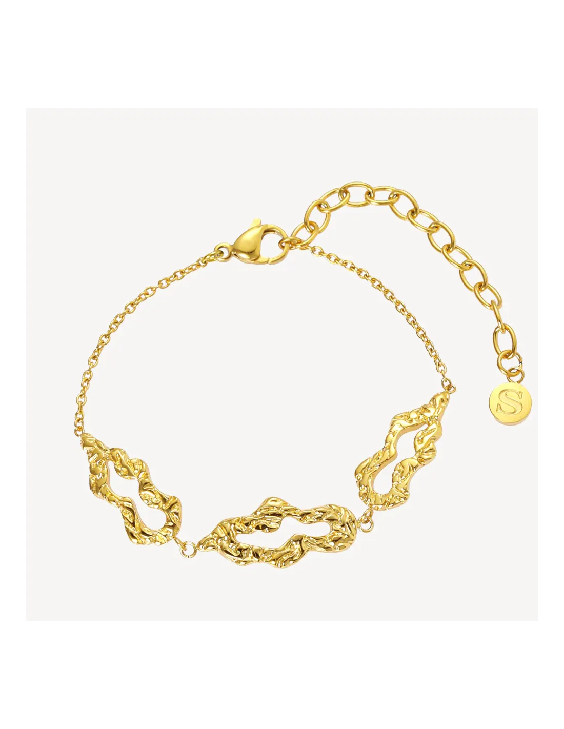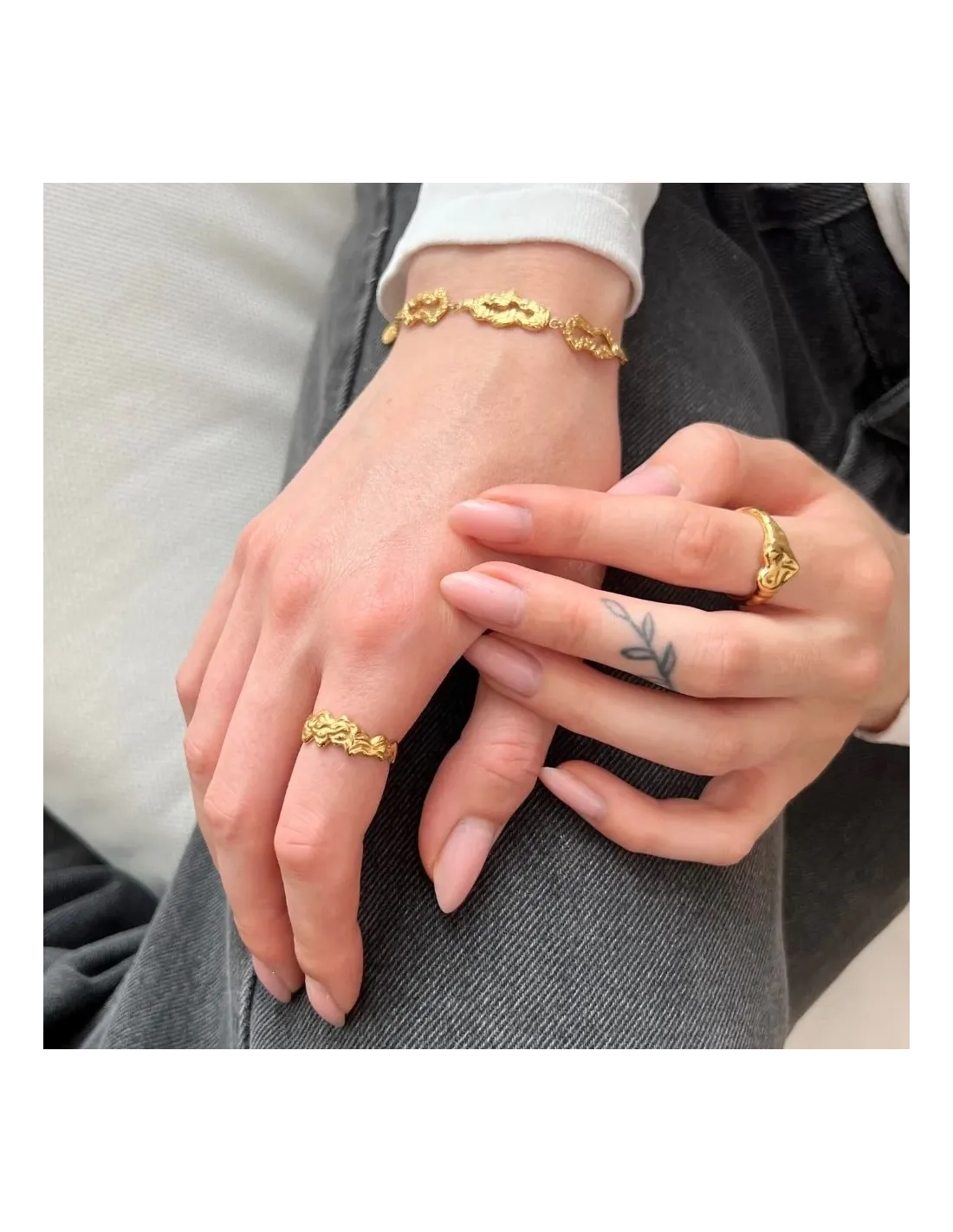 Alle smykker er lavet i genanvendt stainless steel og belagt med ekstra holdbar PVD-coating, som sikrer lang levetid – også i vand. De tåler både klor, saltvand og daglig brug uden at miste glans.