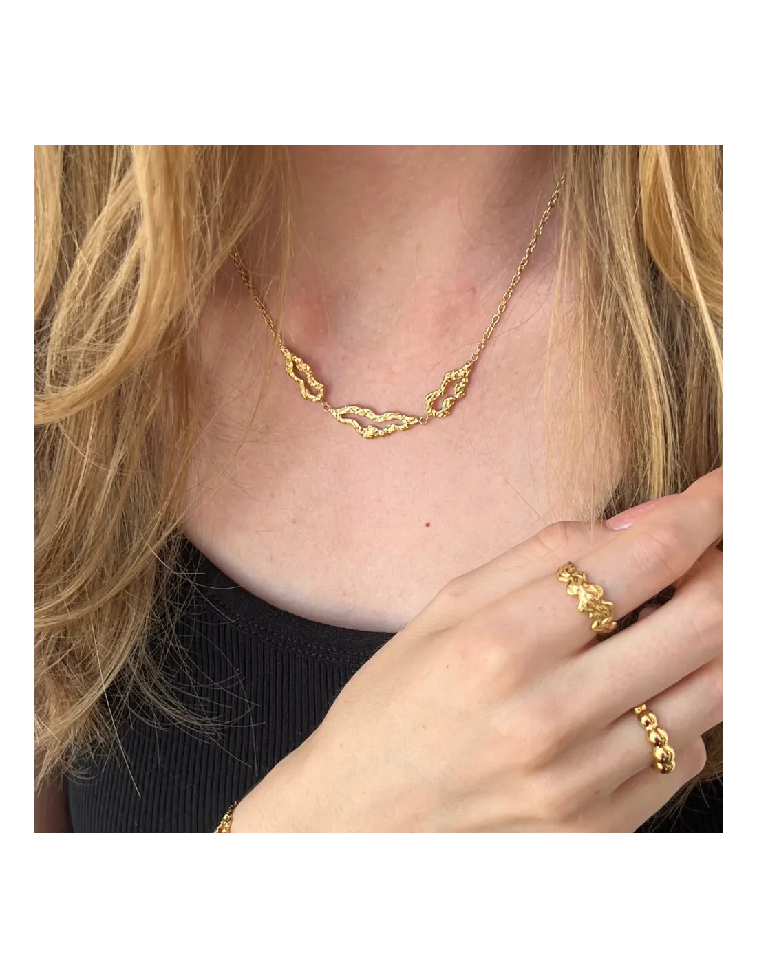 Alle smykker er lavet i genanvendt stainless steel og belagt med ekstra holdbar PVD-coating, som sikrer lang levetid – også i vand. De tåler både klor, saltvand og daglig brug uden at miste glans.