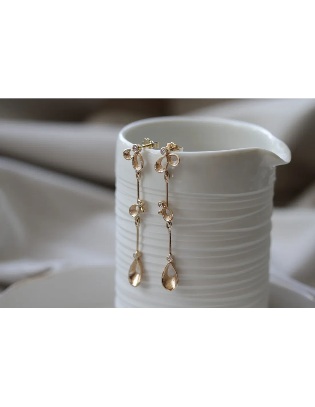 Øverst sidder en fin lille blomst på øret, og herfra følger to led, der svinger frit og elegant med i dine bevægelser.