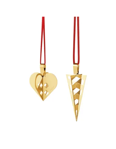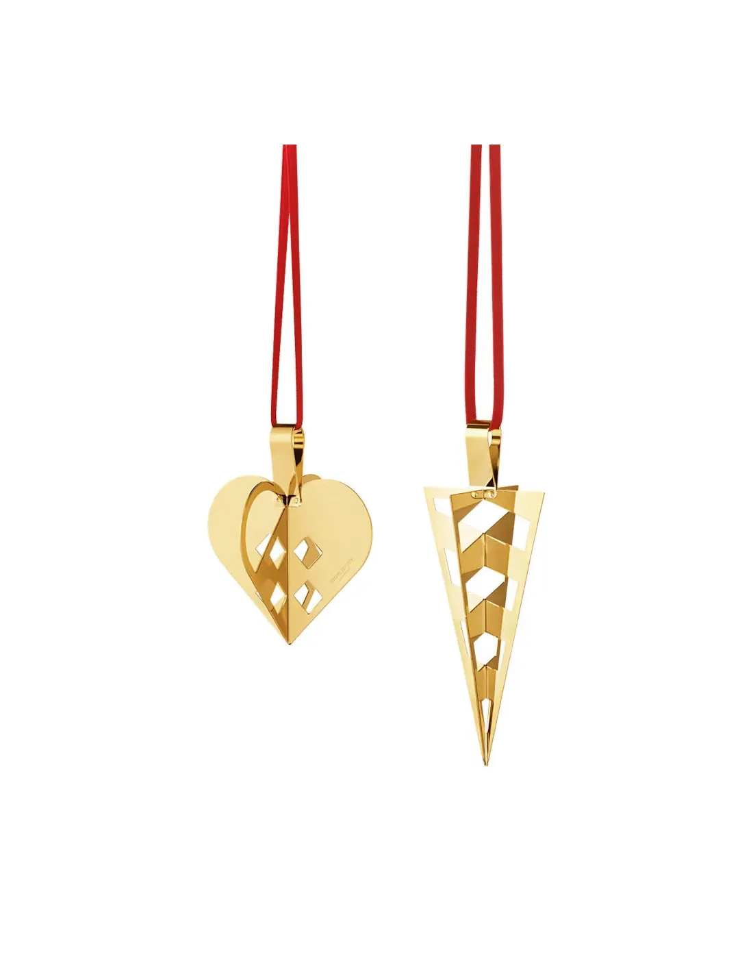 I 2025 præsenterer Georg Jensen en elegant serie af juleornamenter, som fylder hjemmet med nostalgisk charme i juletiden. Julekollektionen byder på traditionelle danske julemotiver – det flettede julehjerte og det klassiske kræmmerhus. Dette sæt består af begge designs, fortolket i messing belagt med funklende 18 karat guld.