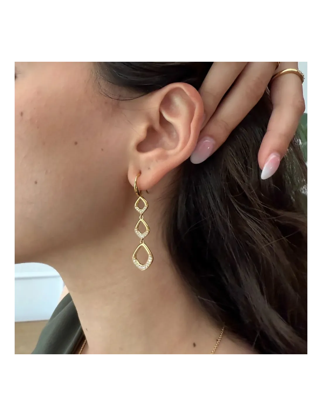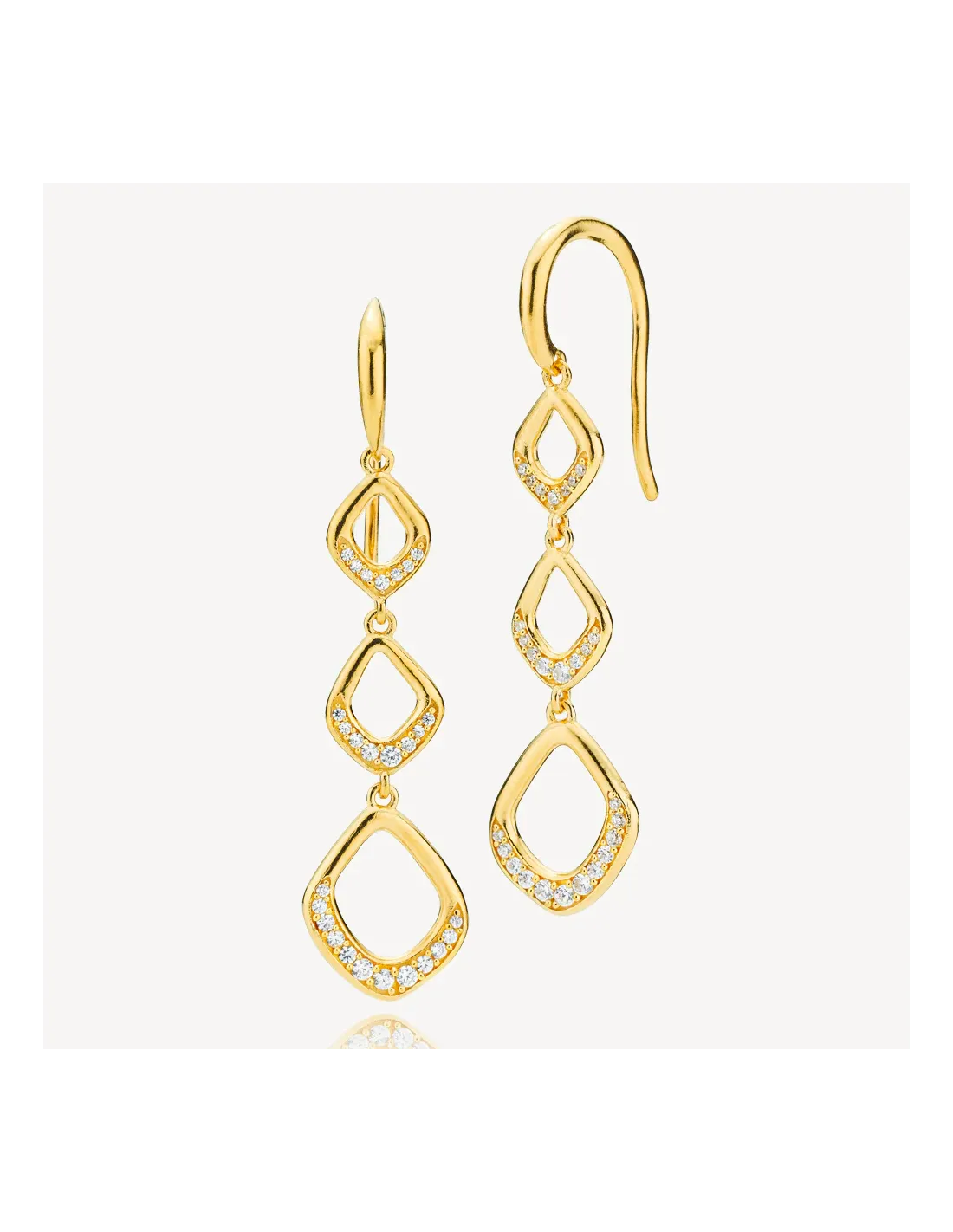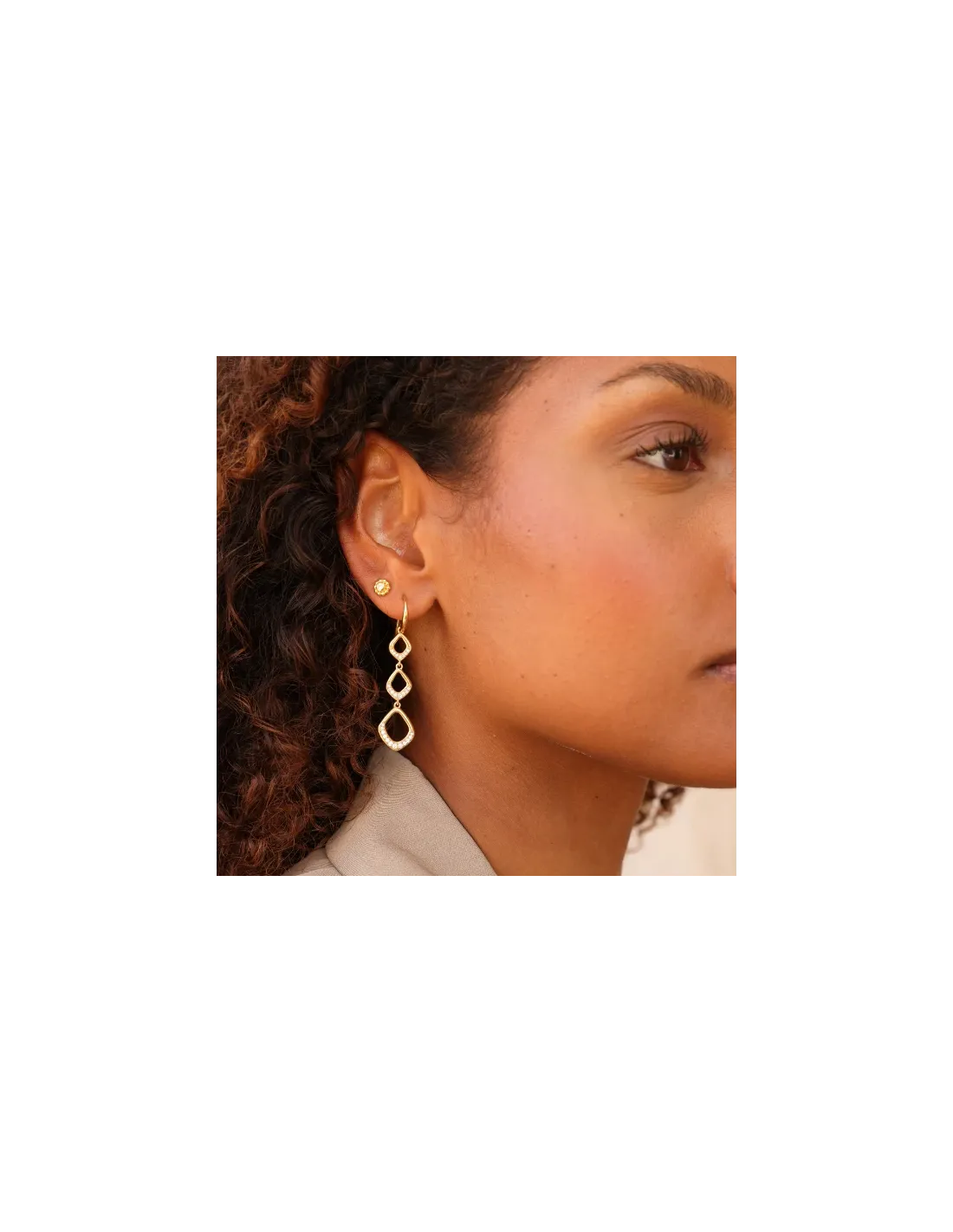 Øreringene er fremstillet i 18 kt. forgyldt sterling sølv (100% recycled ♻️) og prydet med små hvide sten, der fanger lyset og giver et sofistikeret udtryk.