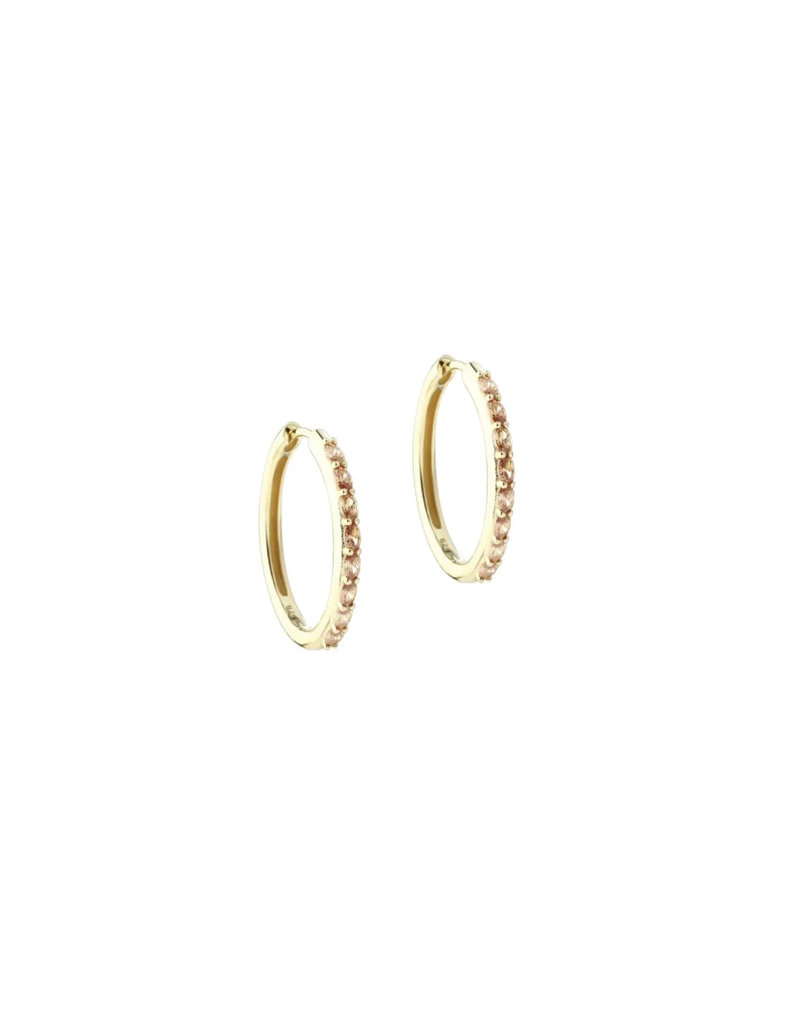 Forgyldte creoler i 925 sterling sølv (14 kt. guld) med zirkonia-sten. Diameter: 25 mm. Elegant, glitrende design med et eksklusivt touch.