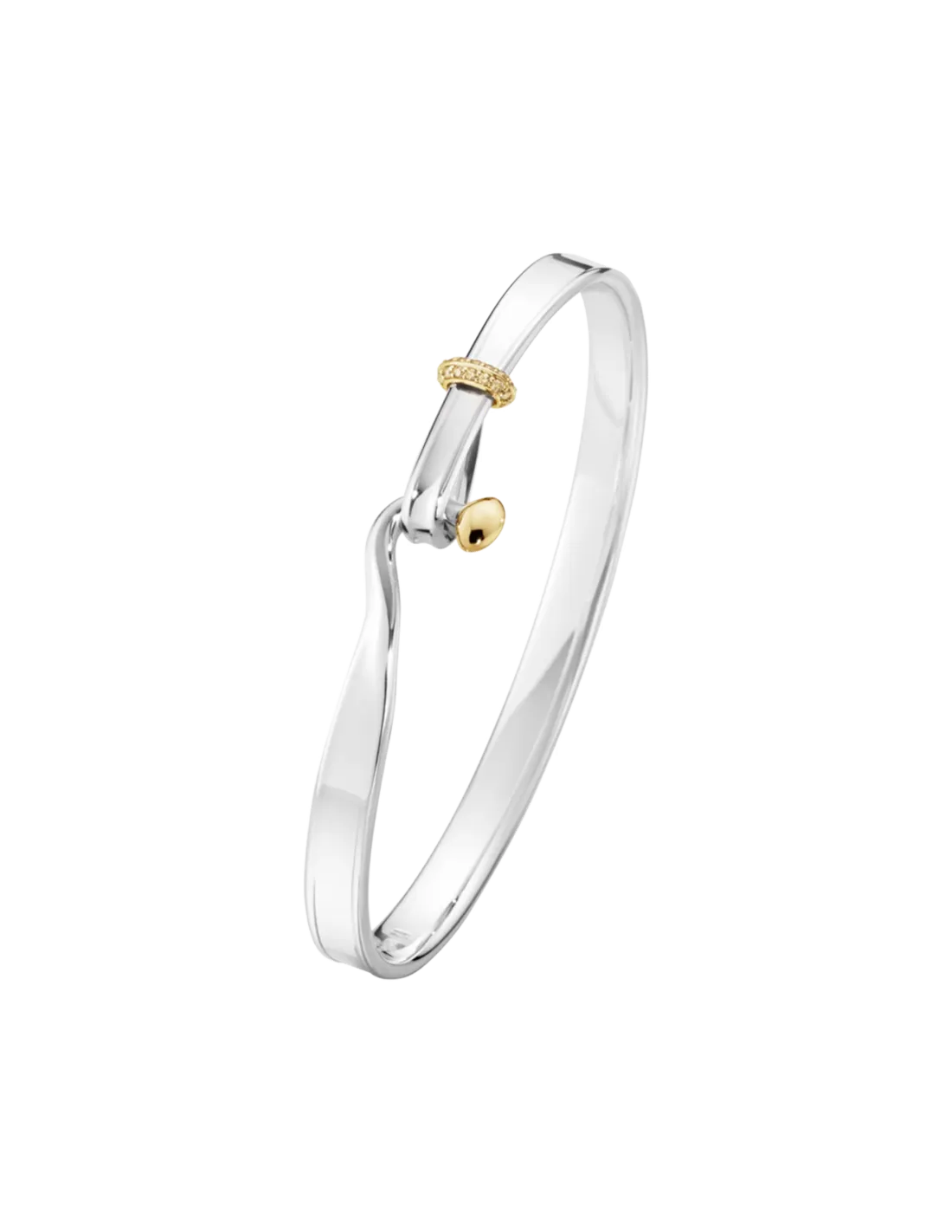 Georg Jensen Torun armring i sterling sølv med 18 kt. Guld og champagnefarvet diamant