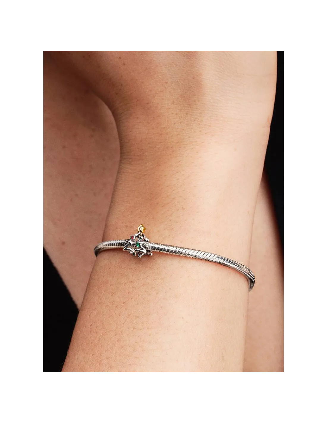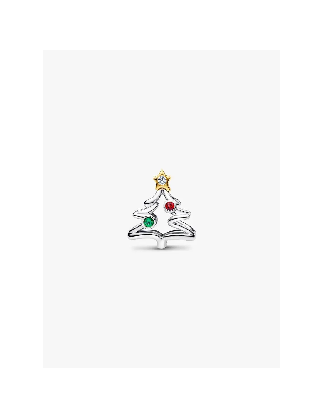En festlig klassiker i nyfortolkning. Dette åbne juletræscharm kombinerer sterlingsølv og 14 kt. guldbelægning med klare røde og grønne syntetiske krystaller og en stjerne i toppen. Designet til at kaste glans over dit julelook.