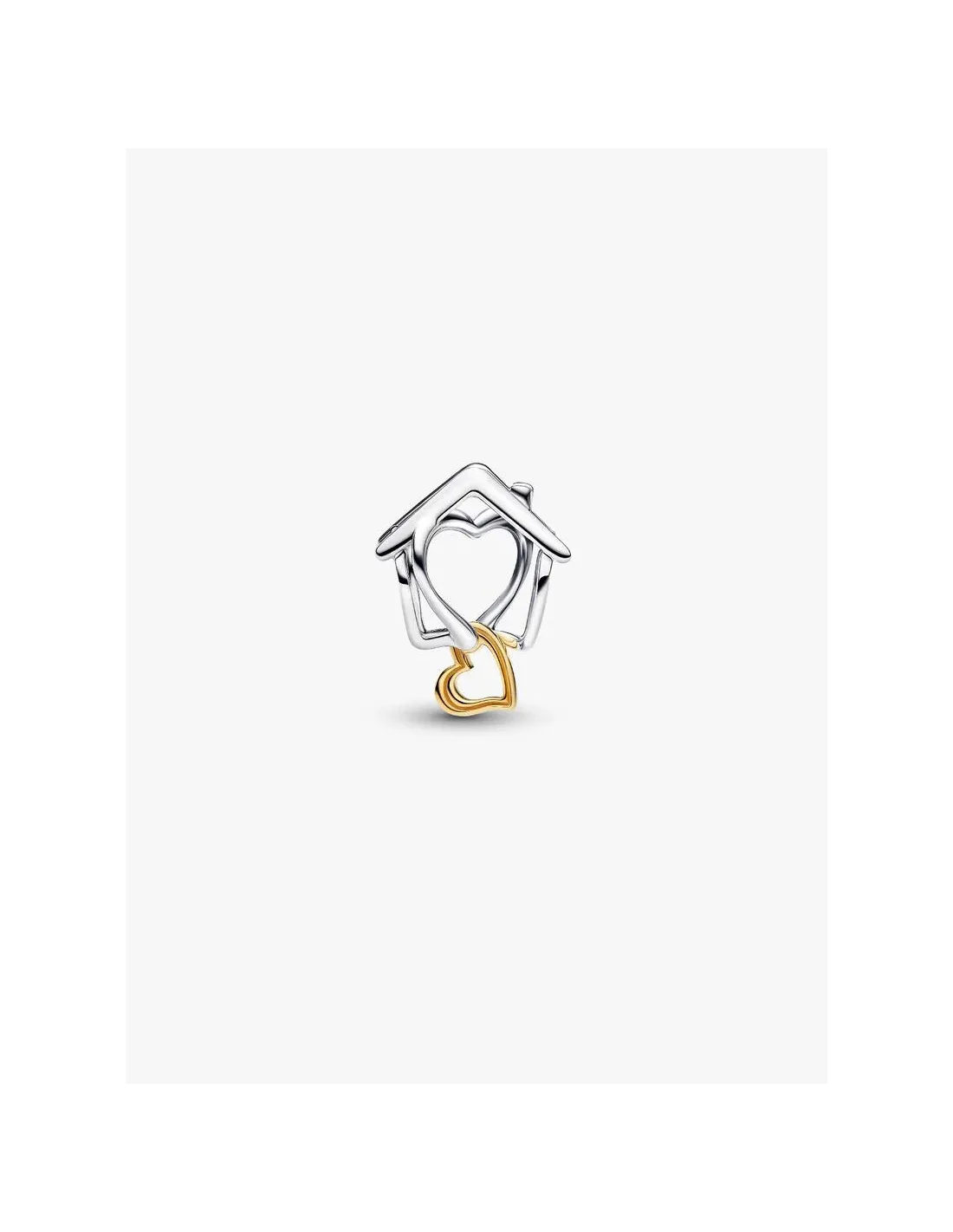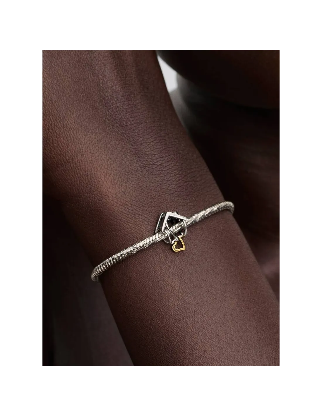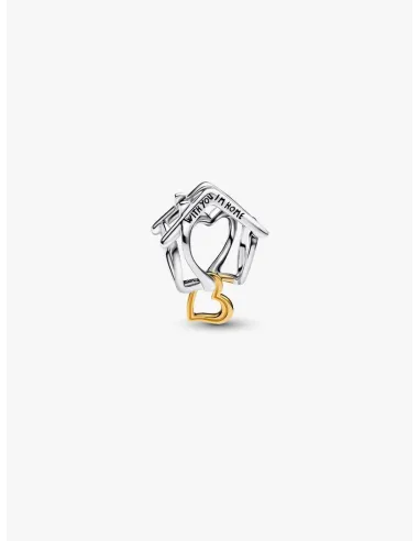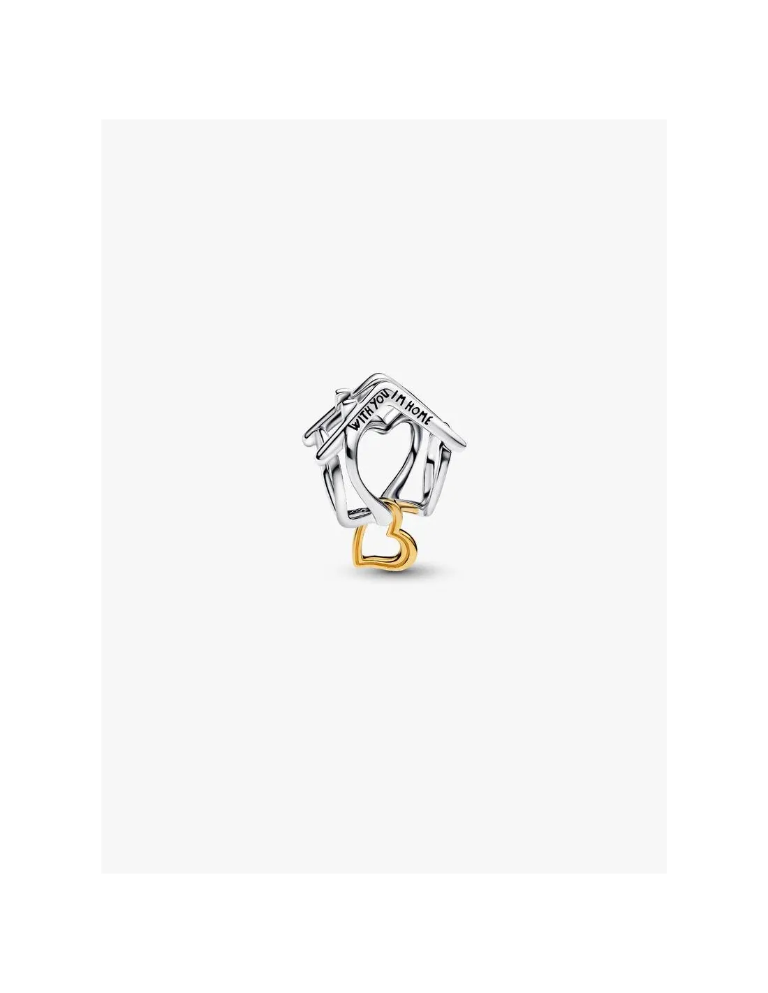 Find varme i hver eneste detalje. Dette charm i sterlingsølv og 14 kt. guldbelægning består af et hus i åbent design med et hængende hjerte og indgraveringen "With you, I'm home". Et symbol på kærlighed og tilhørsforhold.
