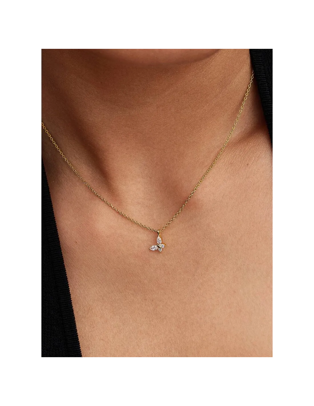 Spred dine vinger, og forvandl dit look med denne 14 kt. guldbelagte halskæde. Fra kæden hænger en sommerfugl på elegant vis. Den er indfattet med klare marquiseslebne og runde brillantslebne syntetiske krystaller.