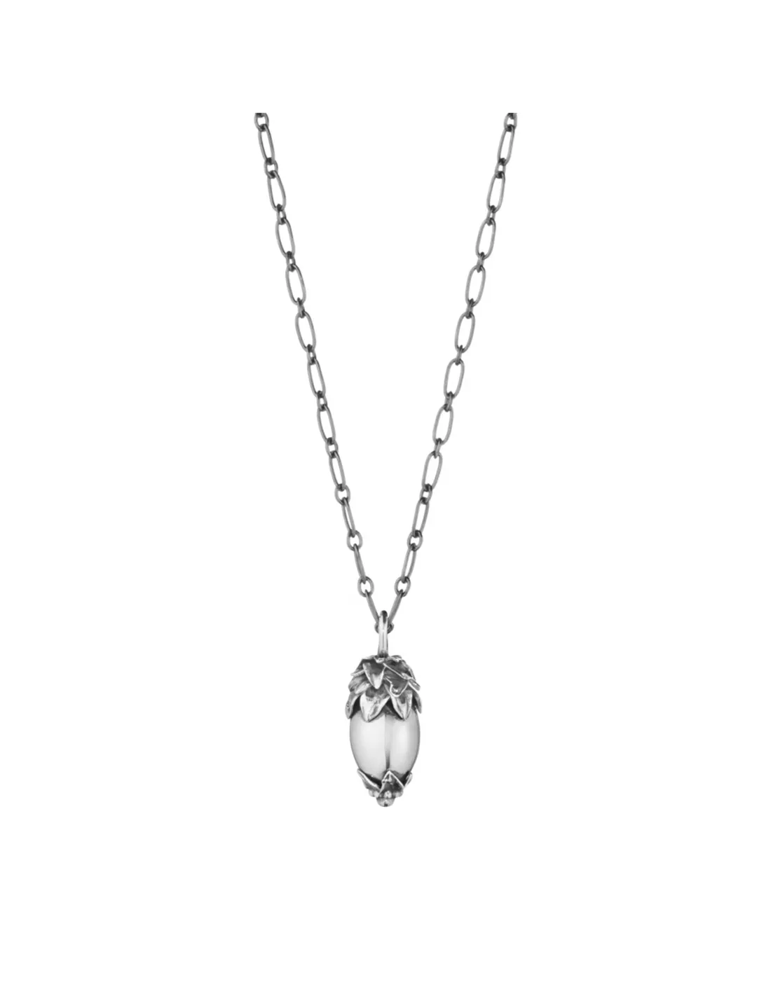 Heritage kollektionen er en hyldest til Georg Jensens rødder i art nouveau-perioden. I 2026 bliver serien udvidet med nye smykker, der hylder de naturinspirerede motiver, som prydede mange af designhusets værker i begyndelsen af 1900-tallet. Denne elegante halskæde har fine, koglelignende detaljer omkring en kerne af sølv. Designet hænger smukt i en enkel kæde. På bagsiden af vedhænget er udgivelsesåret indgraveret, hvilket gør smykket til et ægte samlerobjekt.
