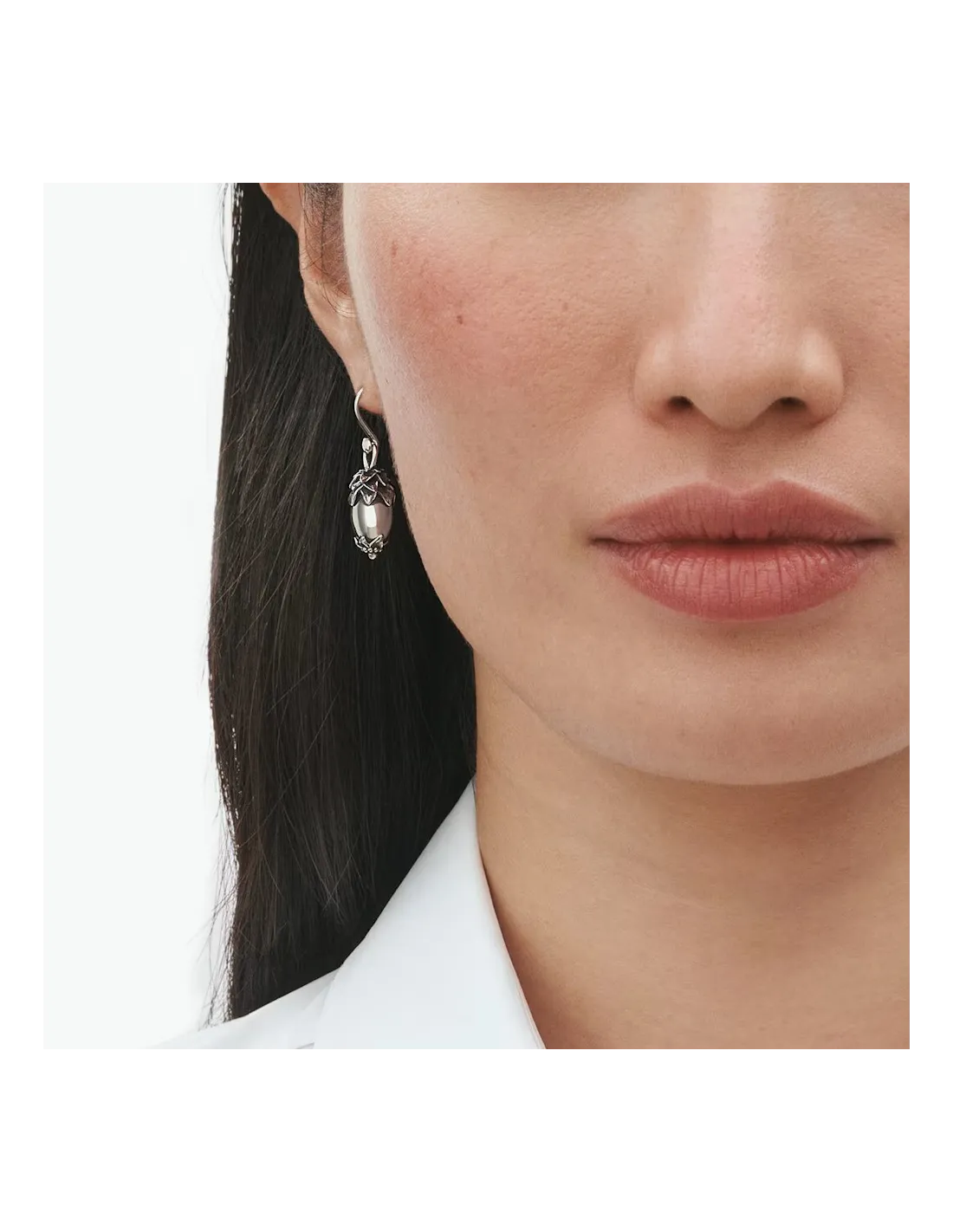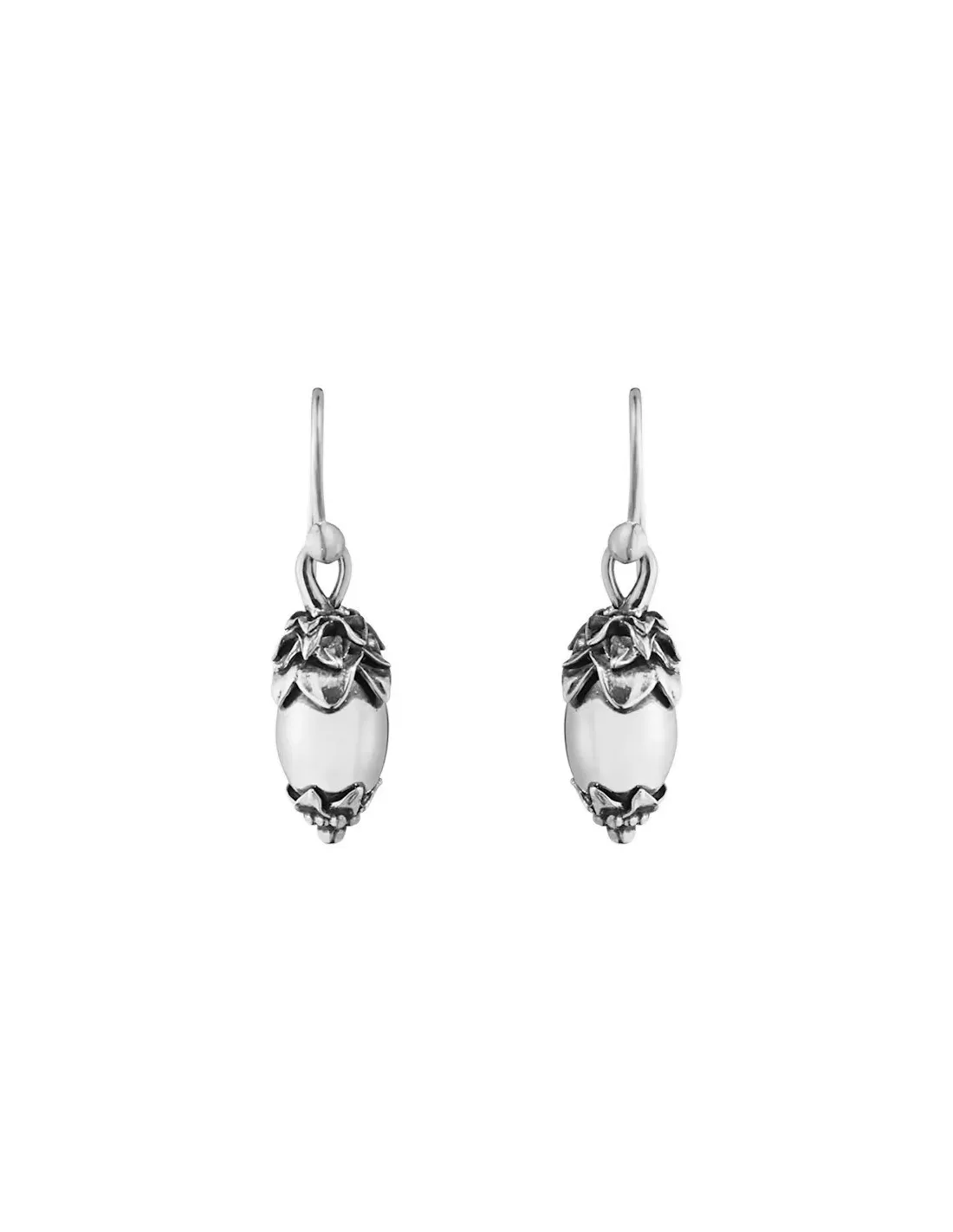 Heritage kollektionen udvides hvert år med et nyt design, der ærer Georg Jensens rødder i art nouveau-perioden. I 2026 hylder smykkeserien de naturinspirerede motiver fra begyndelsen af 1900-tallet. Disse iøjnefaldende øreringe har sirlige, koglelignende detaljer, der omslutter et poleret sølvvedhæng. Udgivelsesåret er indgraveret på bagsiden af hver ørering, hvilket gør dem til ægte samlerobjekter.