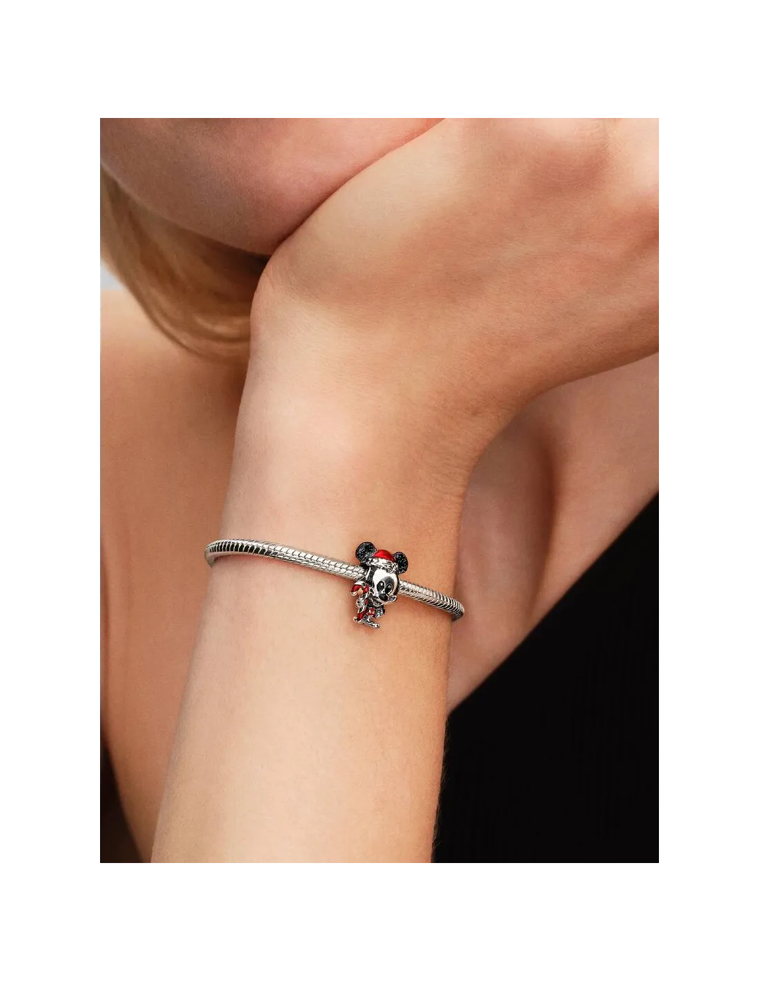 Kom i julestemning med Disneys Mickey Mouse. Dette charm i sterlingsølv forestiller Mickey Mouse med nissehue og sukkerstok. Det er dekoreret med farverig emalje og finurlige detaljer – et ægte julesymbol.