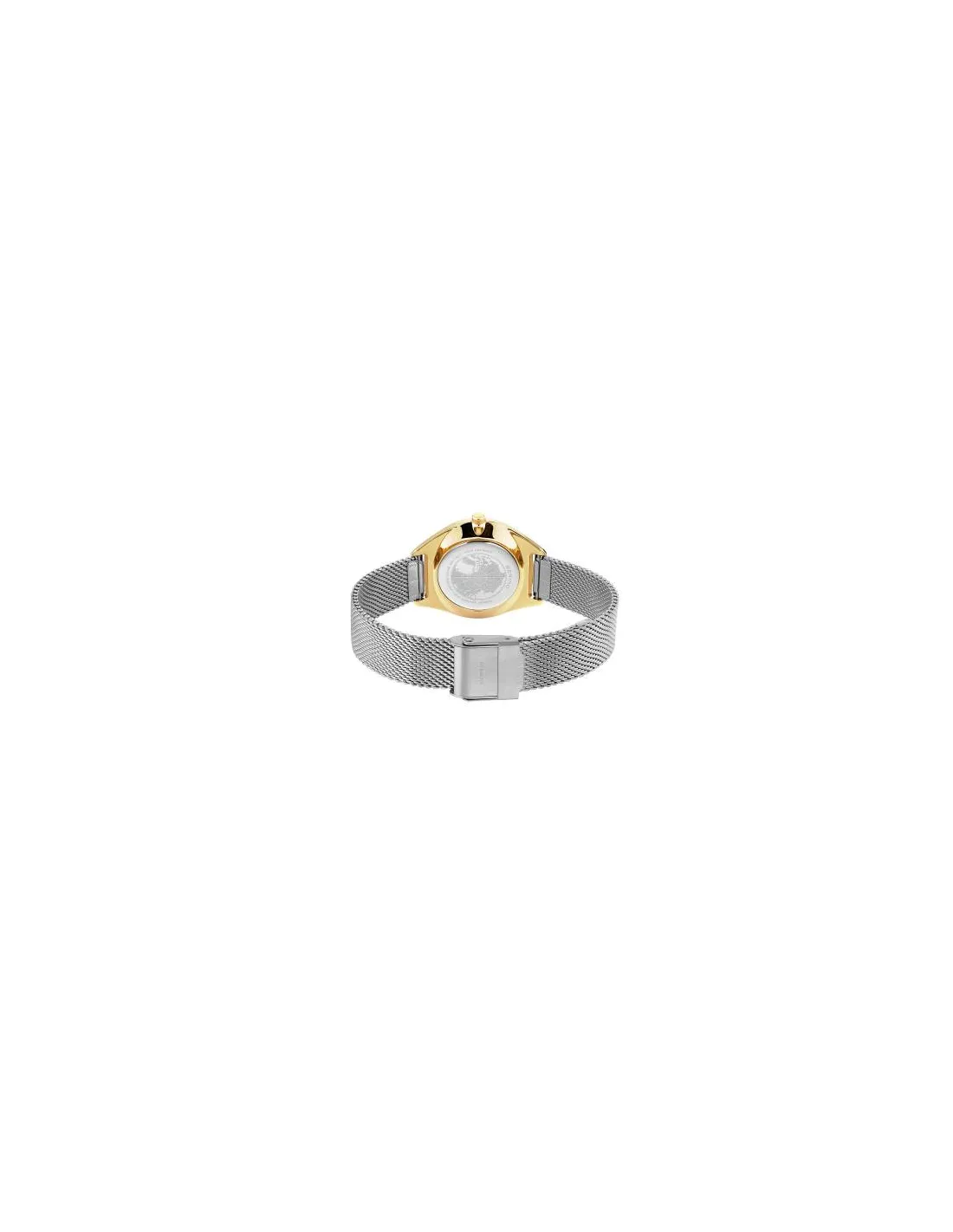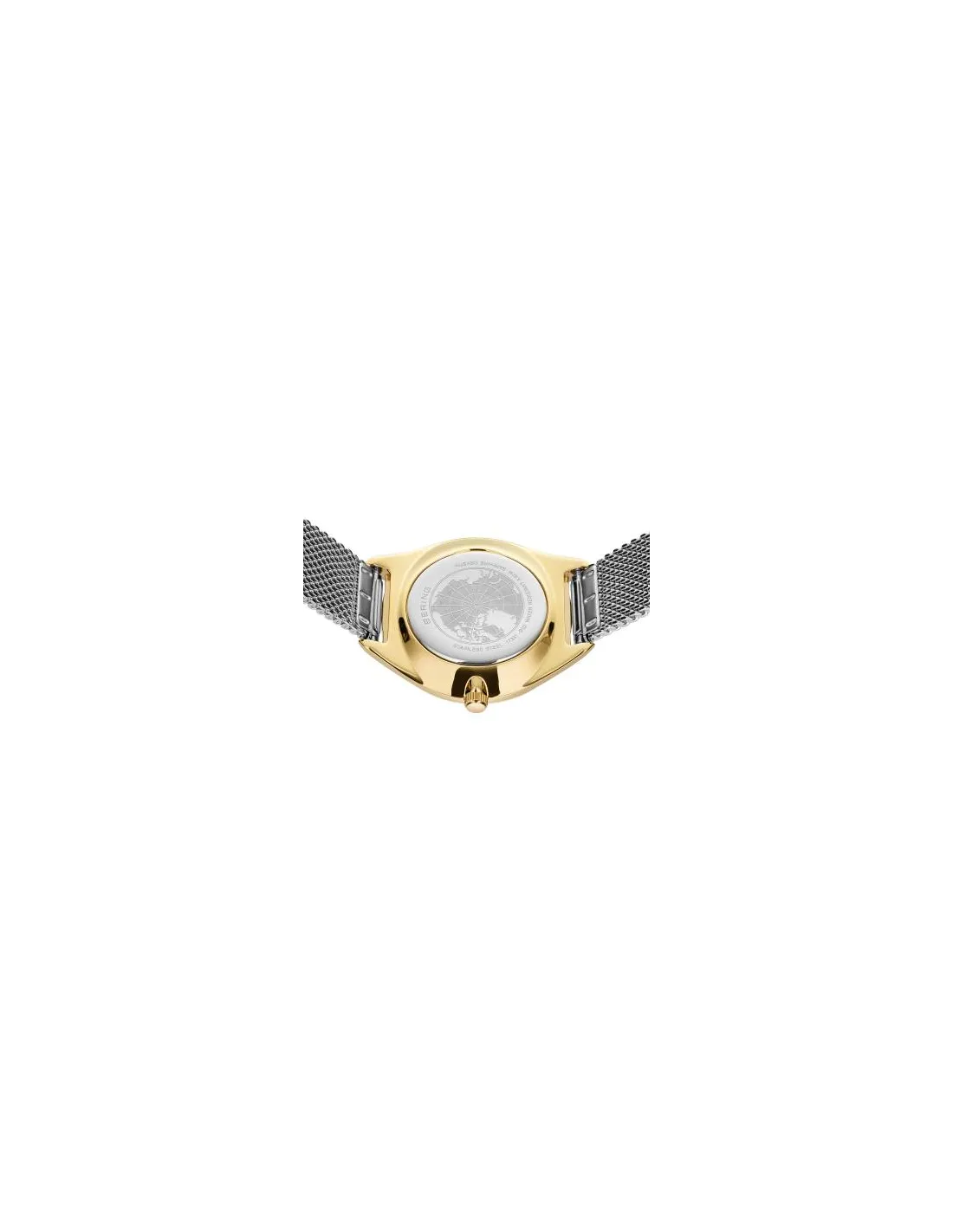 Indvendigt arbejder et solcelledrevet urværk, der oplades af sol- eller kunstlys og kan køre i måneder uden batteriskift. Urkassen i poleret guldfarvet stål, 31 mm lang og kun 6 mm høj, fremstår både delikat og markant. Det sølvfarvede milanesiske armbånd understreger det lette design og fastgøres med en praktisk klaplås.