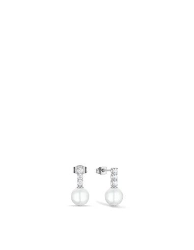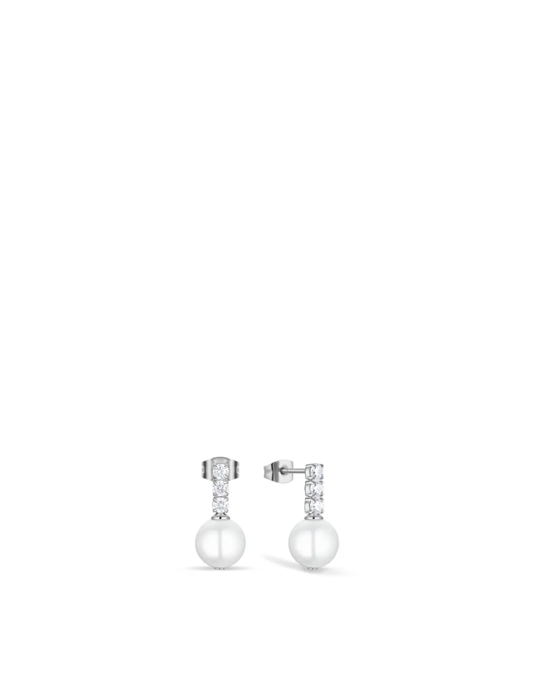 Blankpoleret stål, klare sten og perlens matte finish smelter sammen i et design, der er både moderne og klassisk – som lys på stille vand. Øreringene passer til både hverdag og fest og giver et elegant, afdæmpet udtryk.