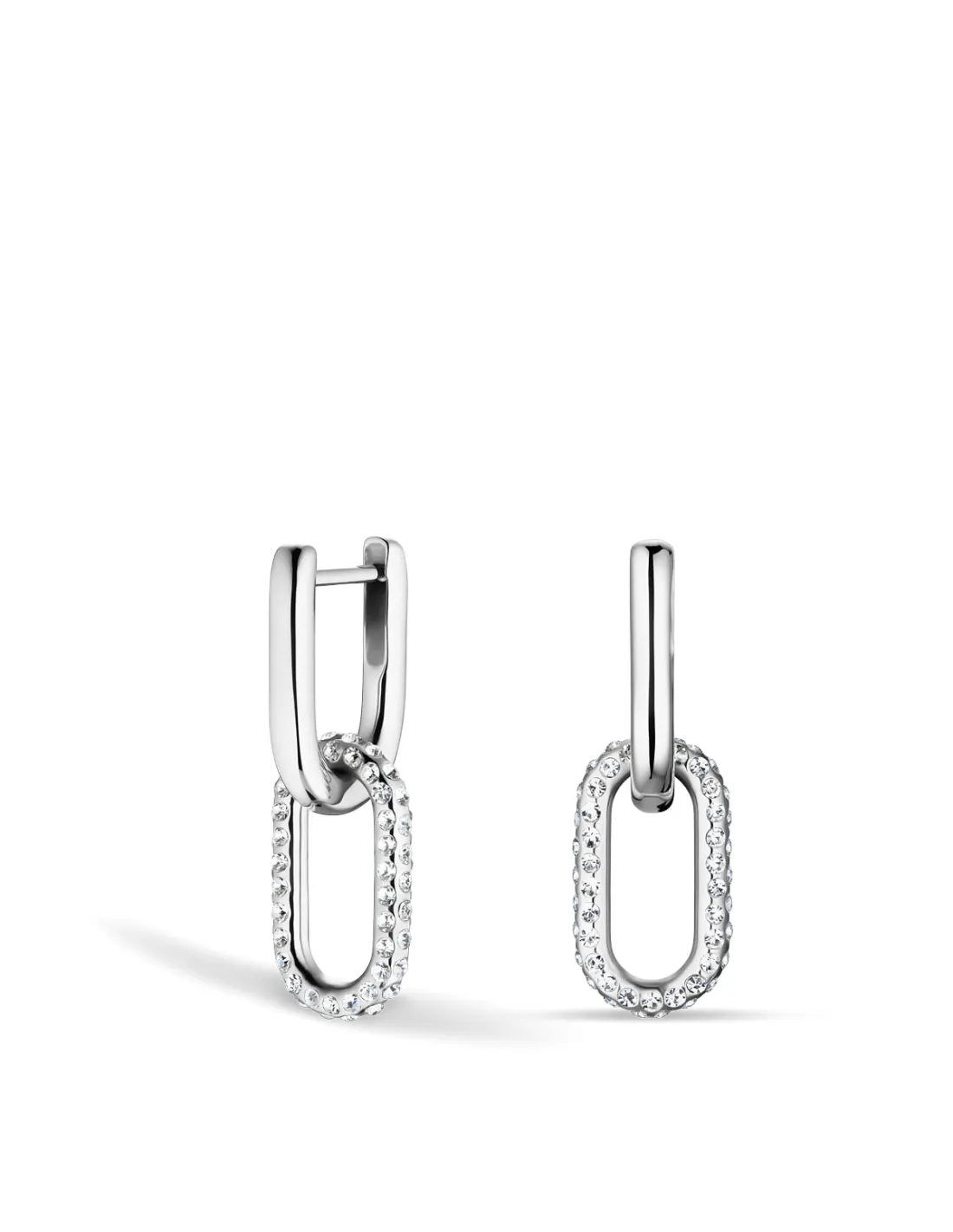 To former, ét udtryk: Disse elegante øreringe fra BERING forener nordisk minimalisme med arktisk skønhed. Den skinnende creol og det aflange vedhæng med funklende zirkonia minder om iskrystaller i solens skær.