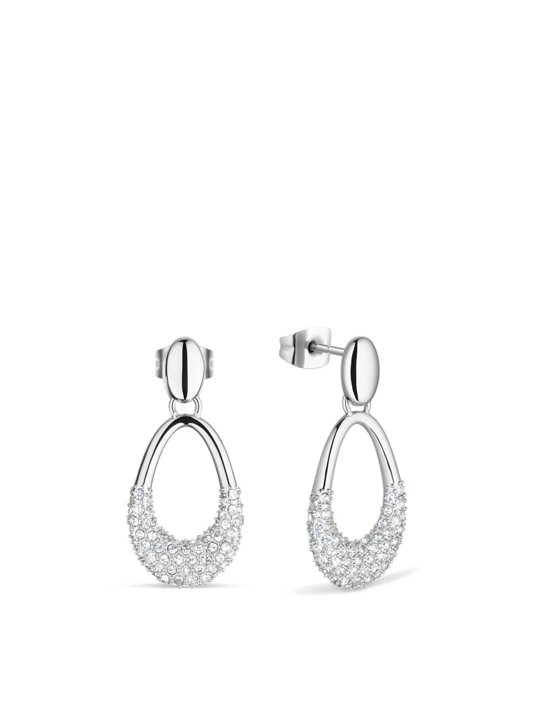 Fremstillet i høj kvalitet med en blank sølvfinish, kombinerer disse øreringe minimalistisk design med eksklusiv glans. Den fine pavé-indfatning og sikre låsemekanisme sikrer både komfort og stil.