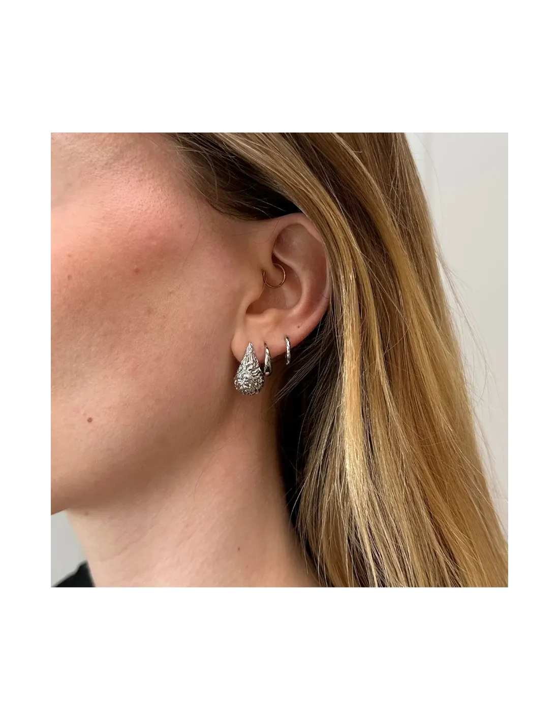 De glinsende, dråbeformede øreringe fra Drops-kollektionen kombinerer feminin udstråling med raffineret tekstur og elegance. De emmer af dansk, minimalistisk design, når det er bedst, og skaber et smukt blikfang til dit look.