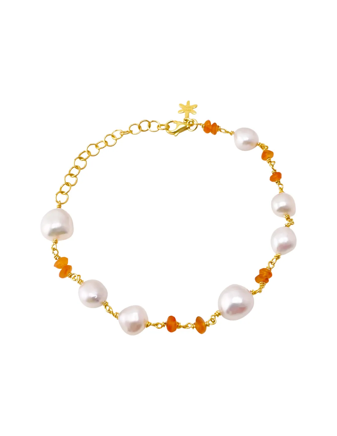 SUSANNE FRIIS BJØRNER | Armbånd forgyldt sølv, barokke hvide ferskvandsperler og karneol