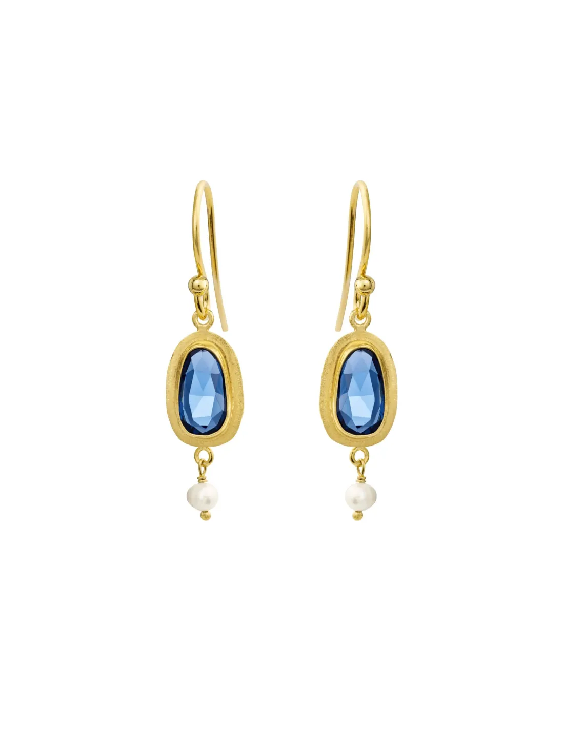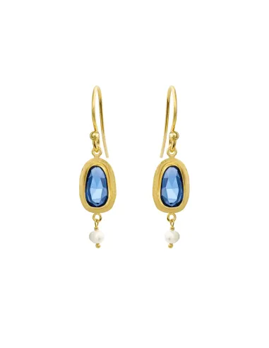 SUSANNE FRIIS BJØRNER | Ørering (bøjle), forgyldt sølv, facet London blå krystal med lille hvid ferskvandsperle
