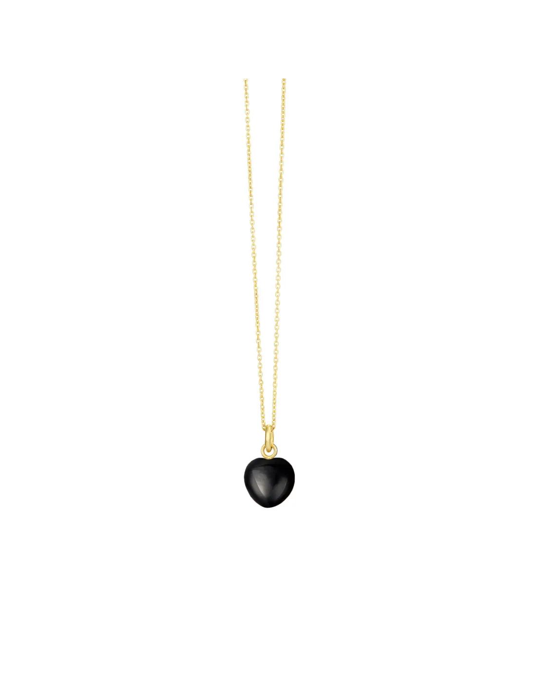 Susanne Friis Bjørner | Halskæde tynd anker 45 cm, forgyldt sølv, 8 mm glat sort agathjerte