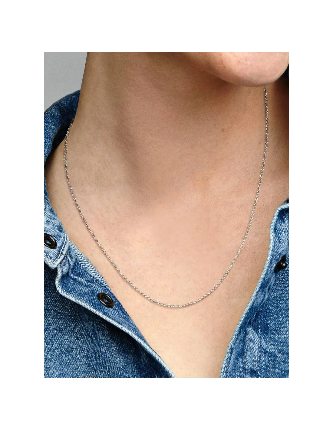 Denne klassiske cable chain halskæde er den perfekte måde at fremvise alle dine fineste Pandora vedhæng og charms. Den er fremstillet i sterlingsølv og har en lukning. Den kan justeres i 3 forskellige længder, så den passer til ethvert outfit. Brug den med dine yndlingsvedhæng fra Pandora eller sammen med andre Pandora kæder for et eklektisk og trendy look.