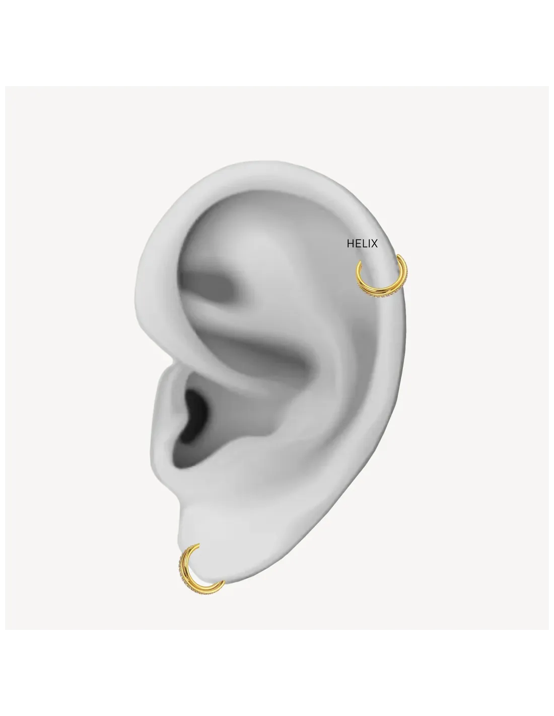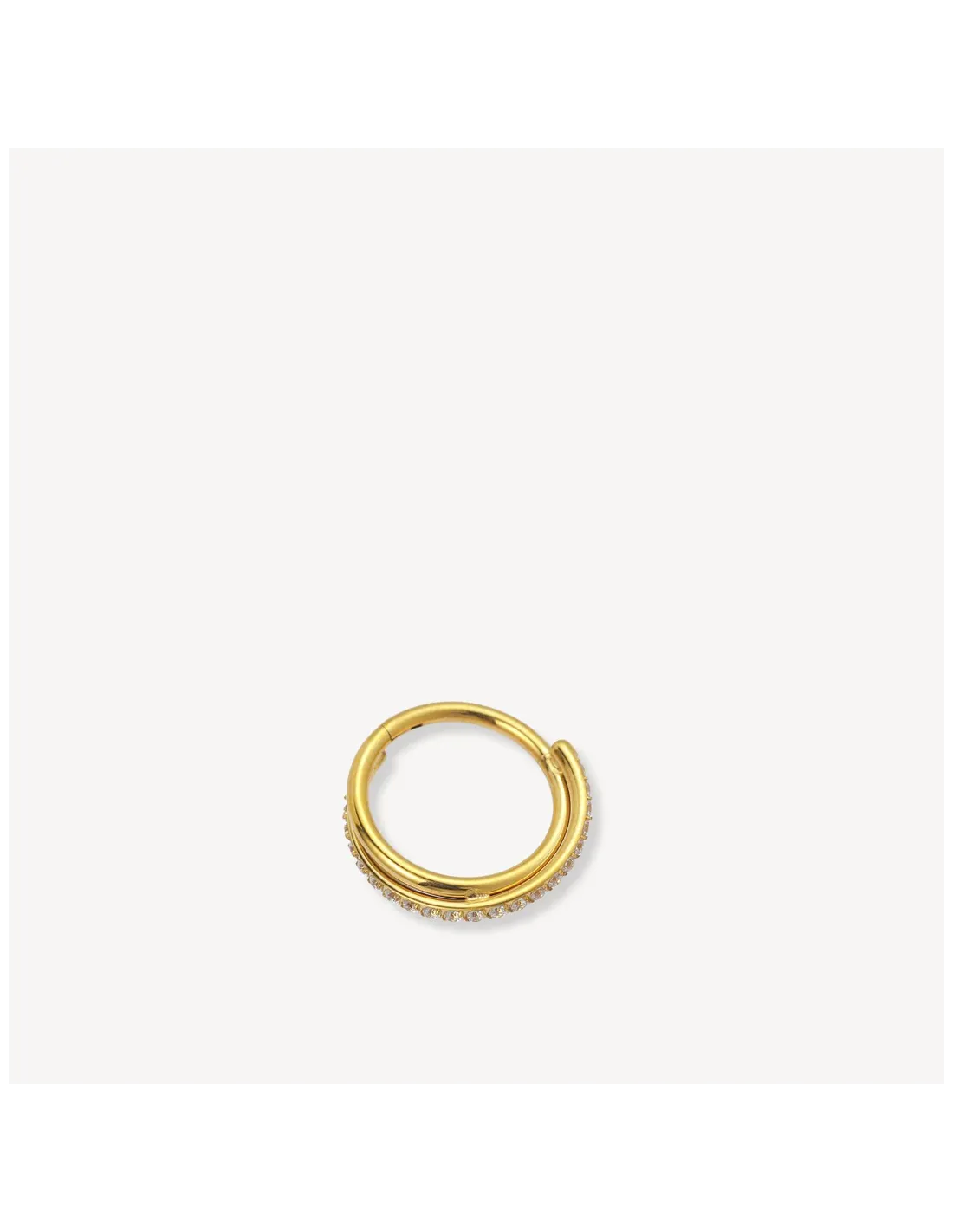 Super flot ørepiercing der ligner at du har 2 ringe i men i samme piercing. Den ene ring har hvide zirkoner hele vejen rundt, og den anden er simpel og plain. Perfekt balance.