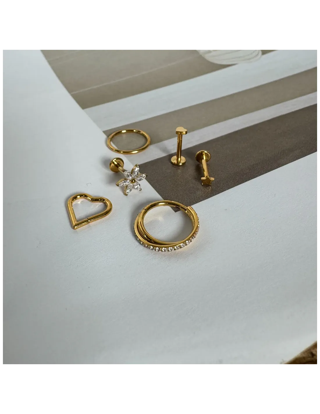 Ringline dobbelt - Piercing i Guldbelagt Titanium