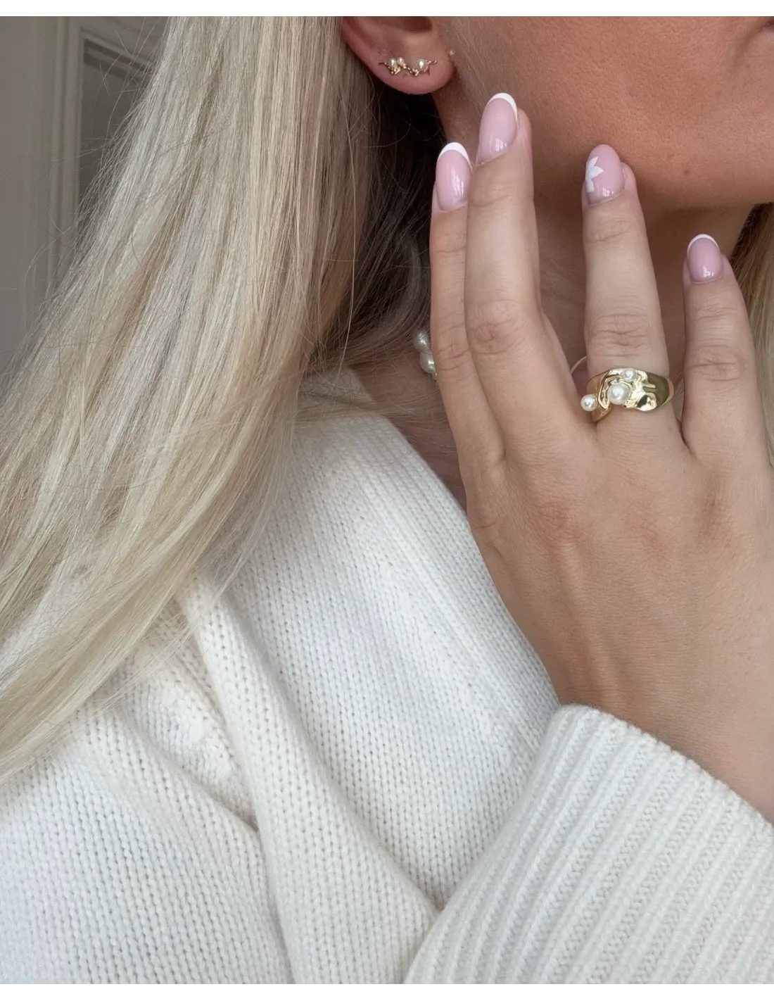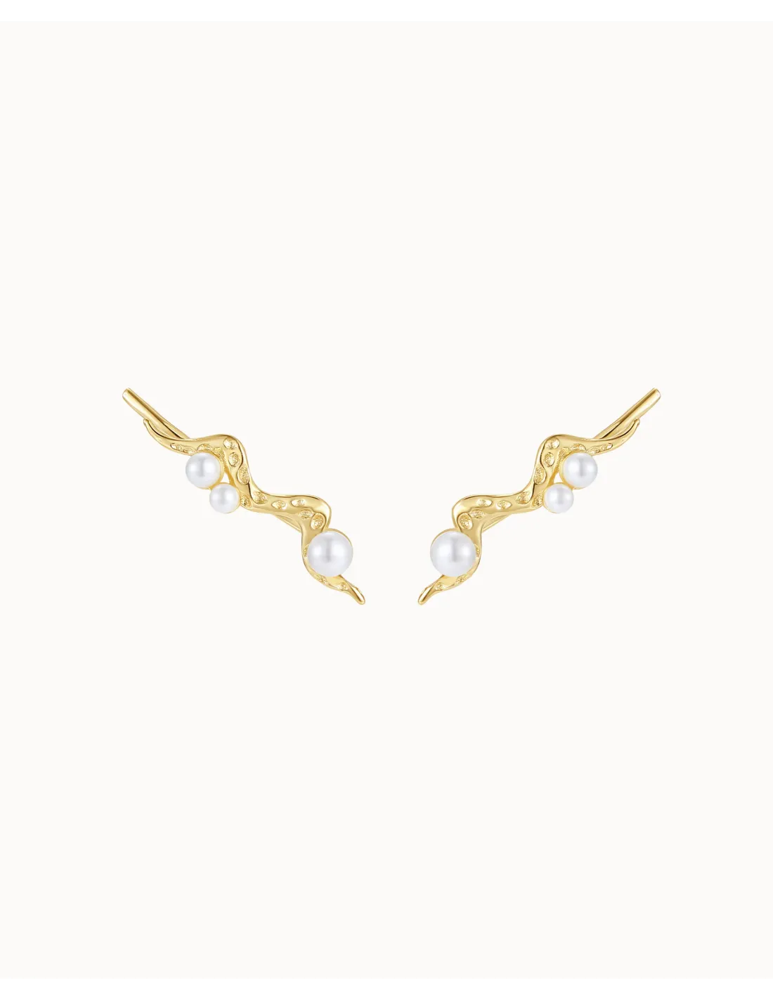 Zephyr Ear Climber har en bølgende, struktureret form prydet med små perler, der følger ørets kurve. Designet skaber et dynamisk og elegant udtryk – en iøjnefaldende detalje fra Siren kollektionen.