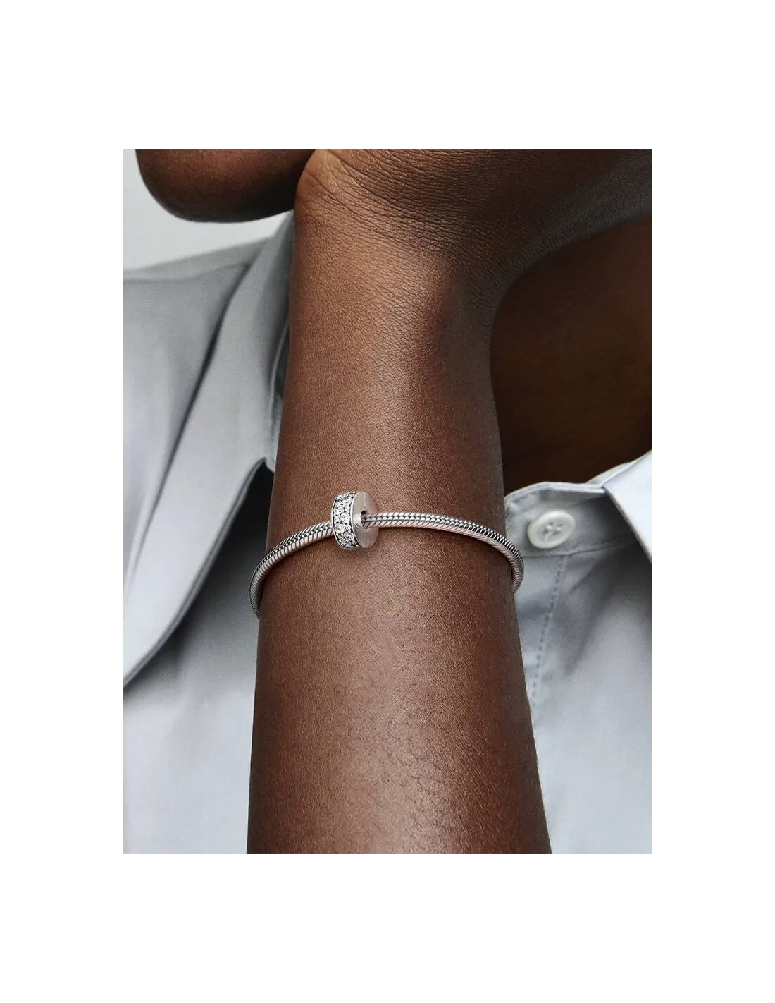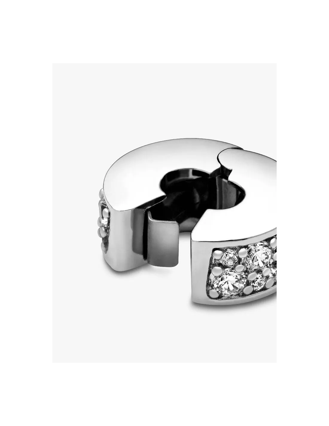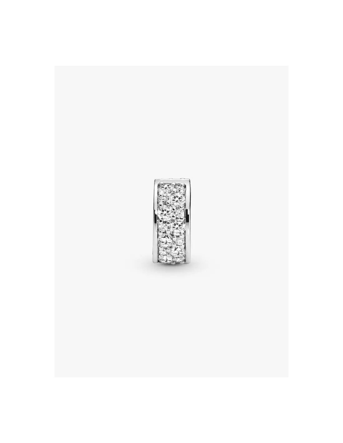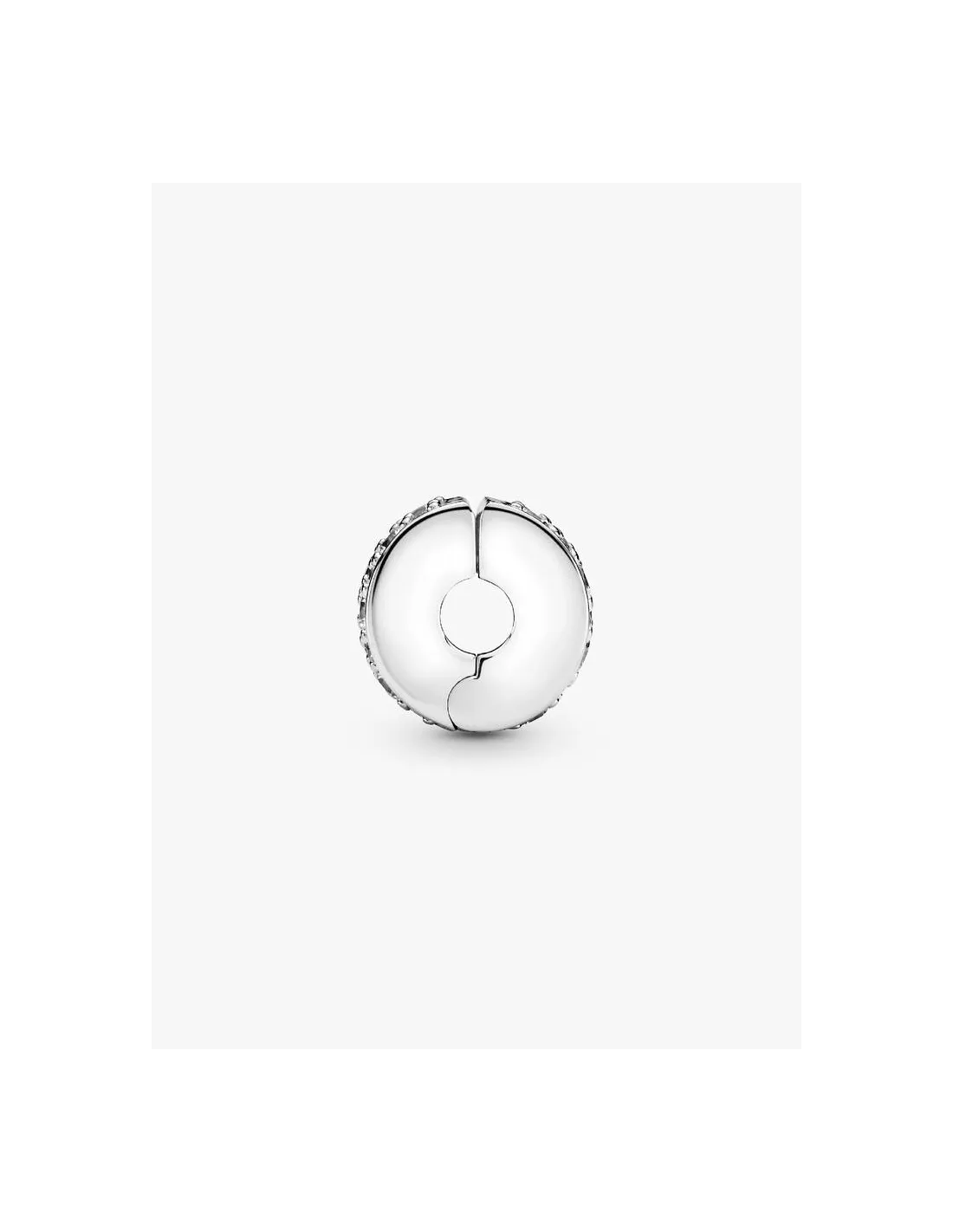 Giv dit look lidt glitter samtidig med, at du holder styr på dine Pandora charms, med dette strålende klemmeled, der er fremstillet i sterlingsølv med zirkoniasten. Pandoras klemmeled har et skjult silikonegreb, der holder dine charms sikkert på plads, og er en stilfuld måde at inddele armbåndet i sektioner på. Dette pavé-klemmeled kan bruges på Pandora armringe, slangehalskæder og de fleste armbånd. Klemmeleddet har et silikonegreb og passer ikke på gevindstykker (to forhøjede charminddelere.) Det charm kan styles alle andre steder på armbåndet.